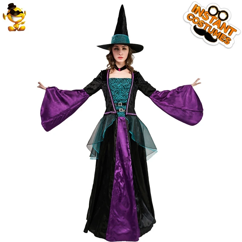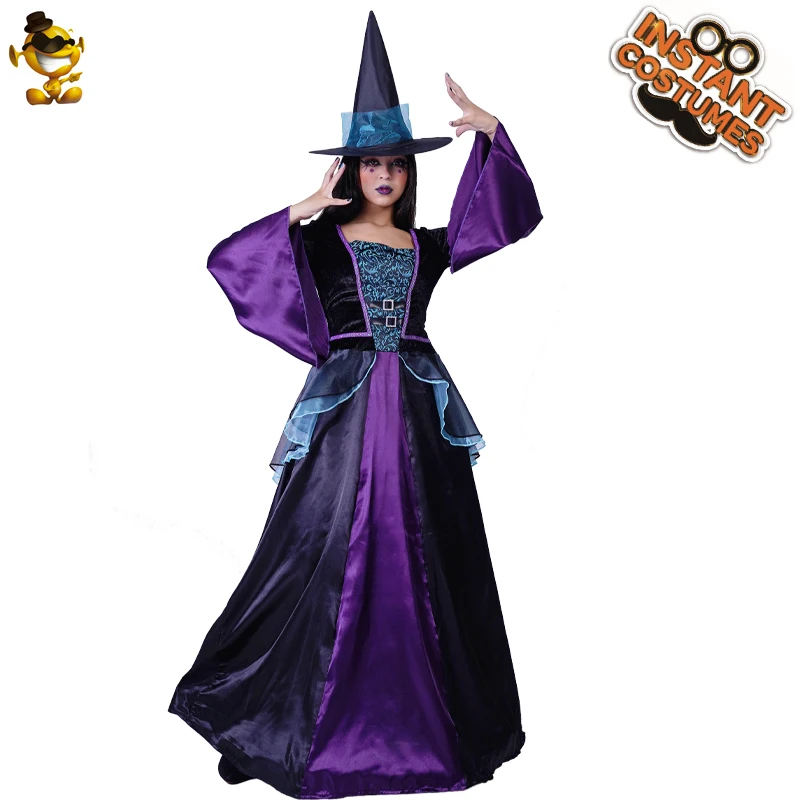 Женский костюм ведьмы, роскошный нарядный костюм, длинное платье для взрослых, костюм на Хэллоуин, вечевечерние, шоу, одежда волшебника
