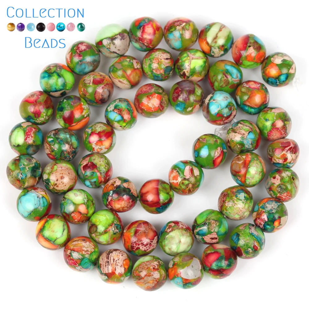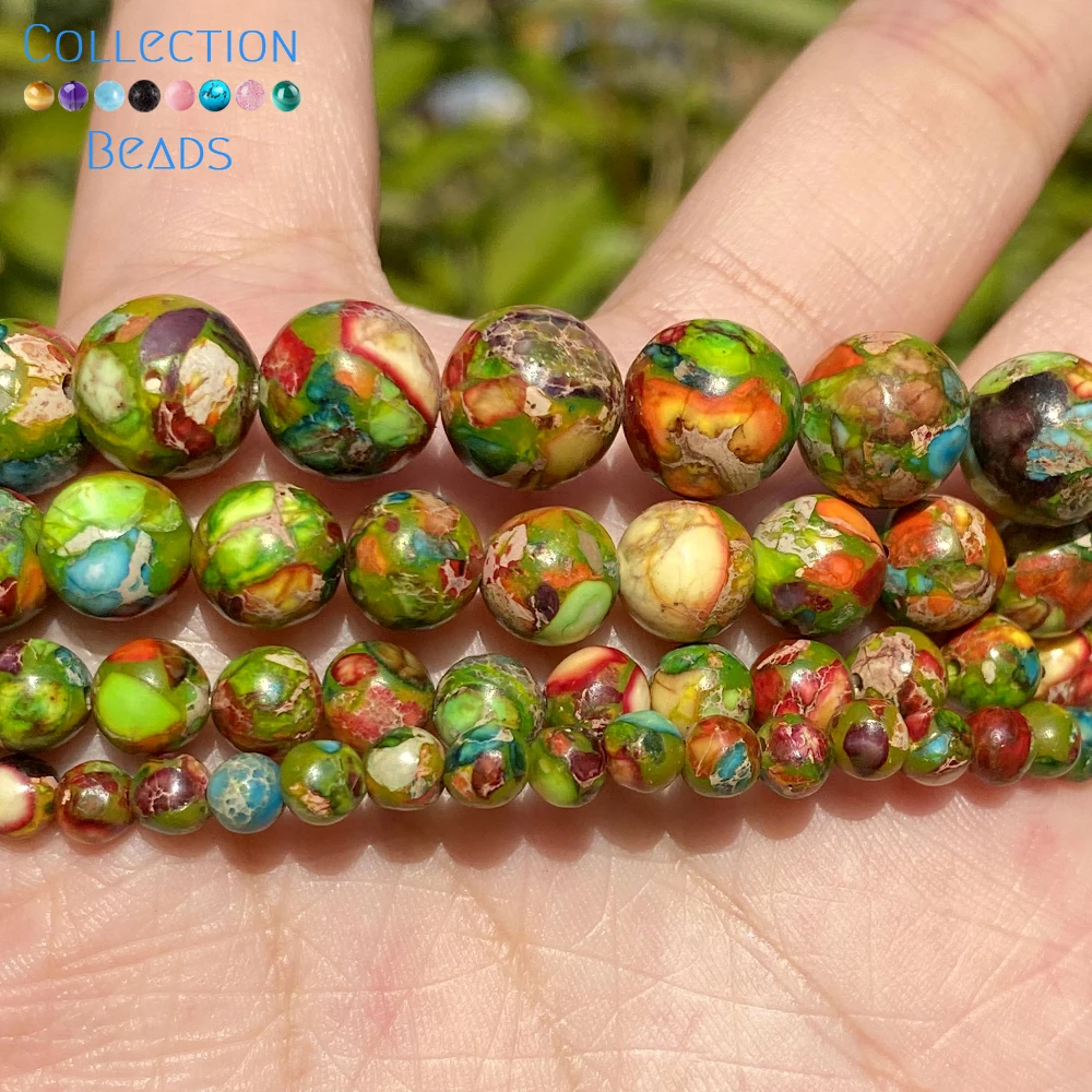 Бусины из натурального камня 4, 6, 8, 10 мм, цветные бусины с морским осадочным узором, круглые бирюзовые бусины для самостоятельного изготовления ювелирных изделий, аксессуары для браслетов