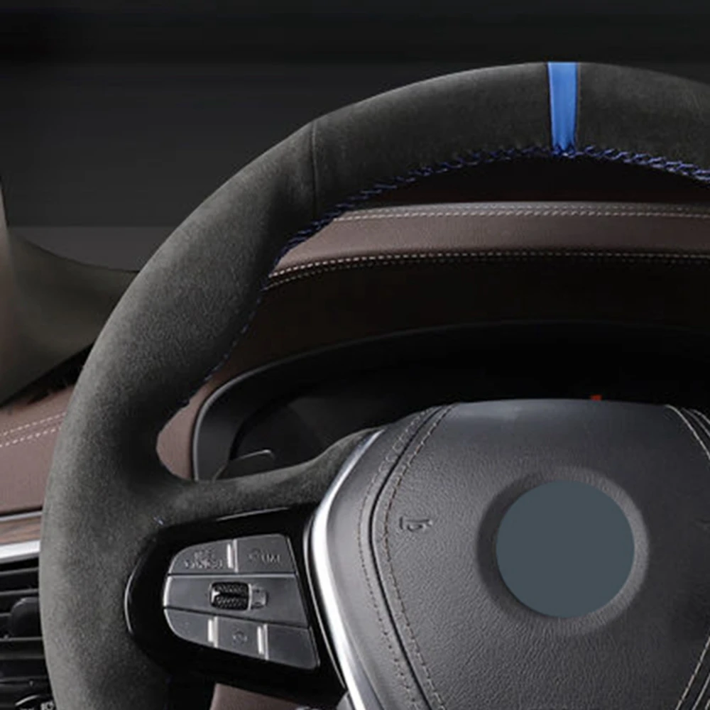 Черная замша Вручную прошитый чехол рулевого колеса автомобиля для ...