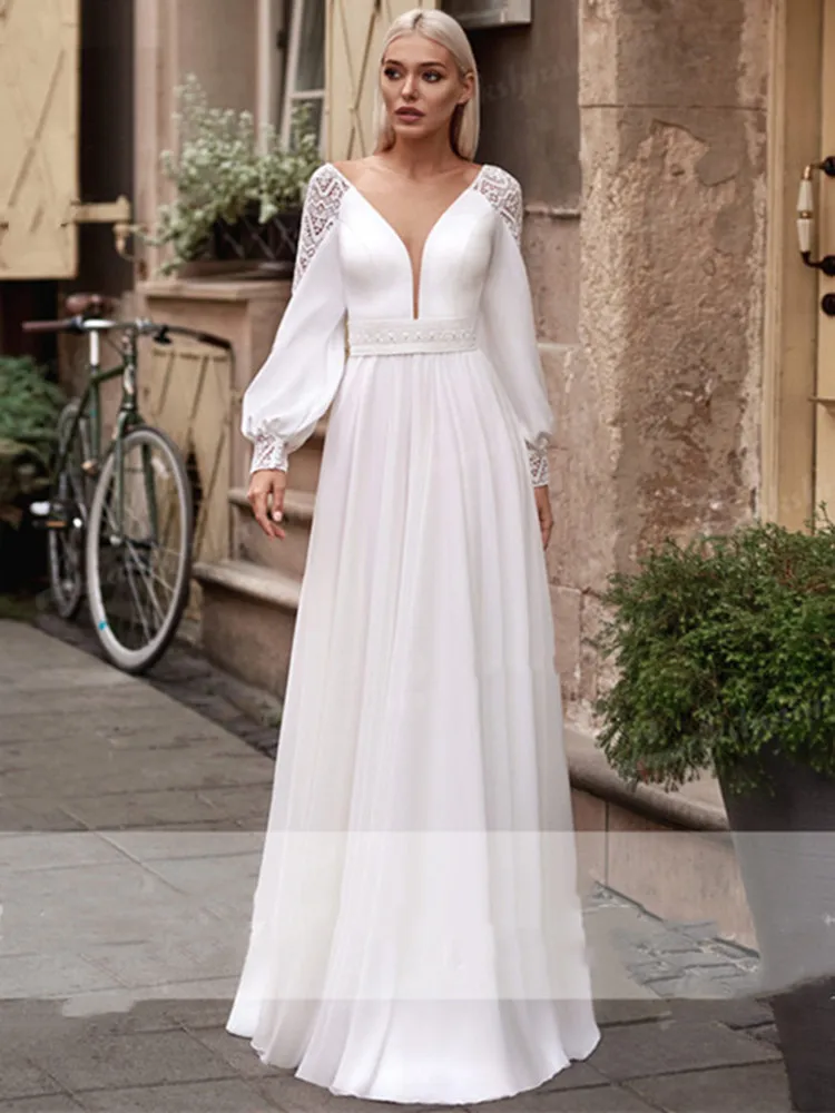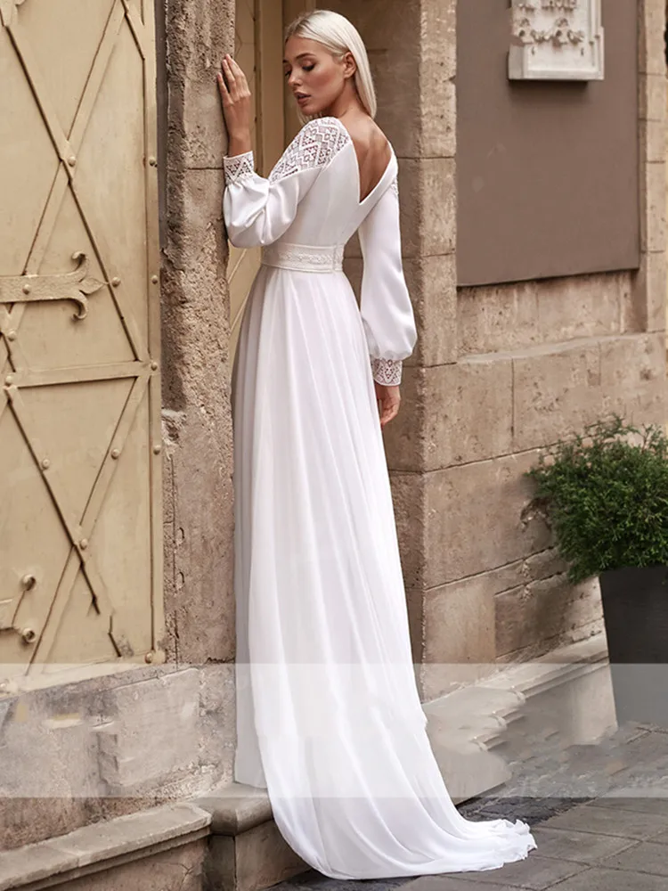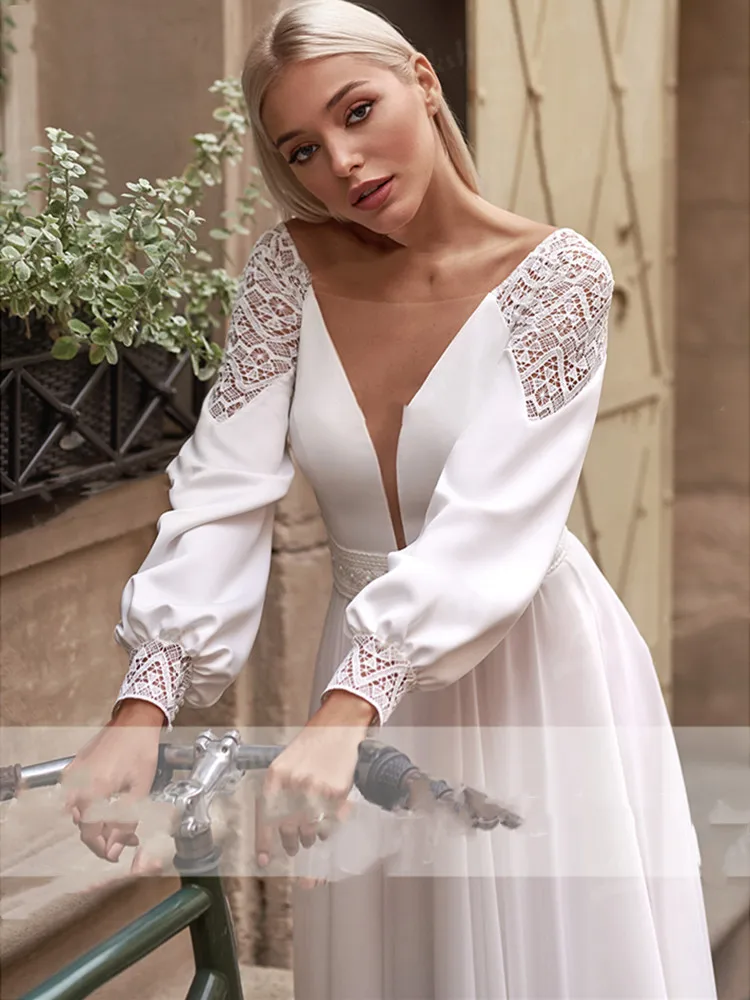 Женское платье с длинным рукавом, V-образным вырезом и кружевной аппликацией