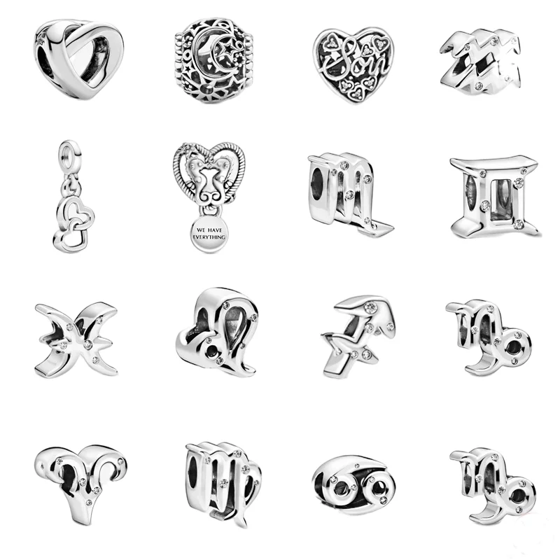 Бусина из циркония с 12 созвездиями, в форме сердца