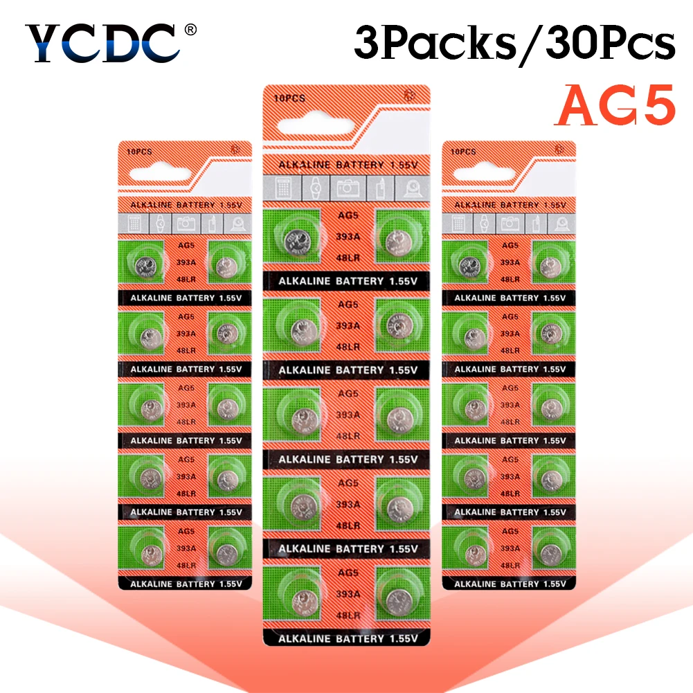 YCDC 30 штук 1,55 в AG5 монетная батарея щелочная батарея D309 D393 G5 G5A L754 LR48 LR754 RW28 SR48 кнопочные батареи для монет