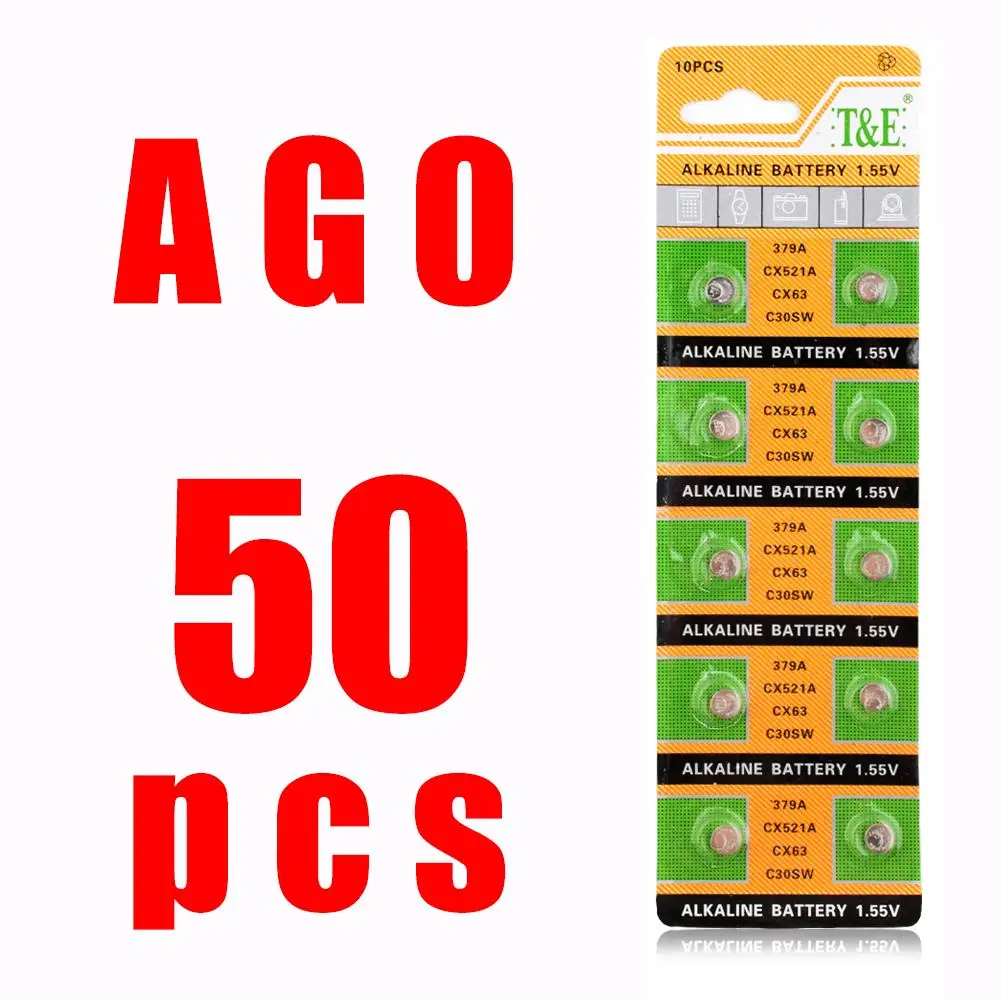 50 шт. 1,55 в AG0 LR521 LR 521 щелочные батареи для монет SR63 LR69 379A SR521SW D379 AG 0 для часов игрушки