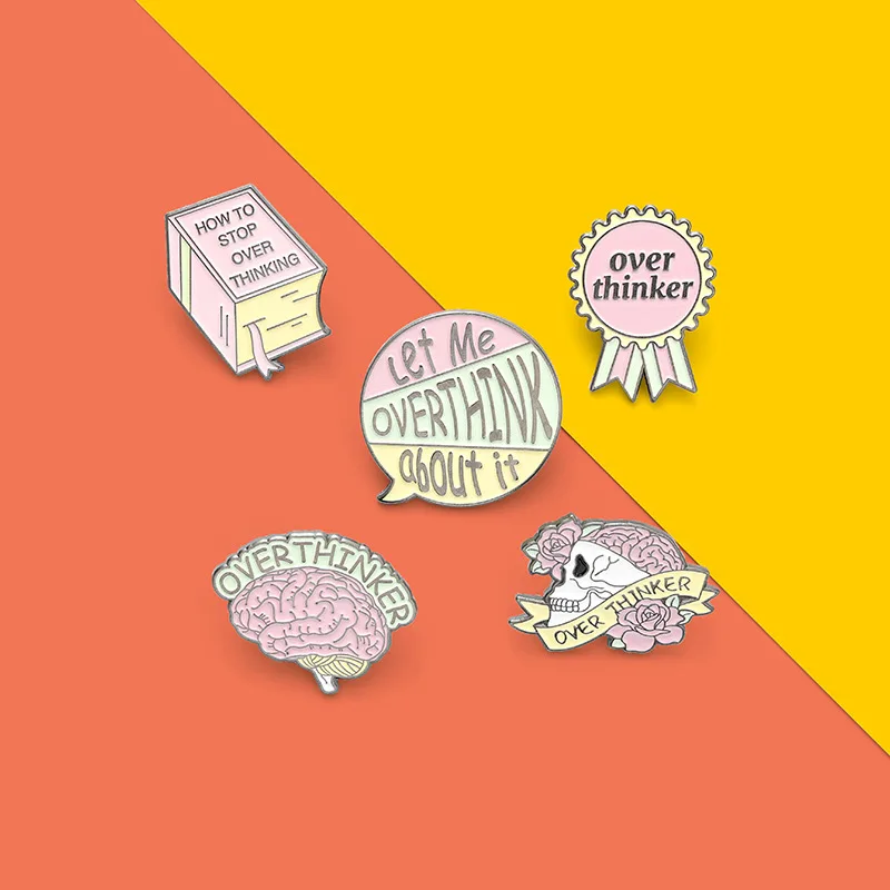 Эмалированная булавка с надписью Over Thinker Brain, позвольте мне ...