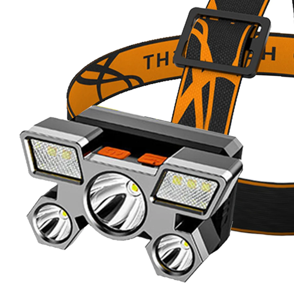 Портативный светодиодный налобный светильник онарь, 5 источников светильник, ультра яркий Перезаряжаемый налобный фонарь, 4 режима, водонепроницаемый фонарик для кемпинга, мощный налобный фонарь