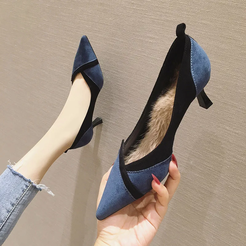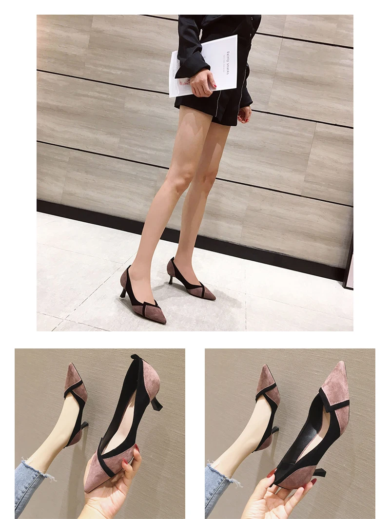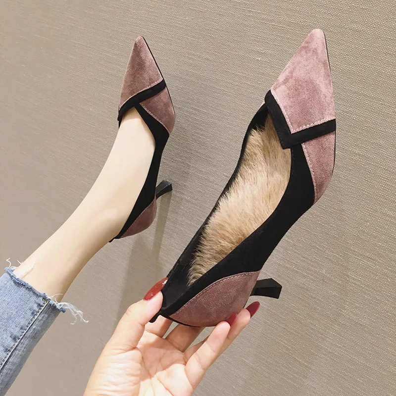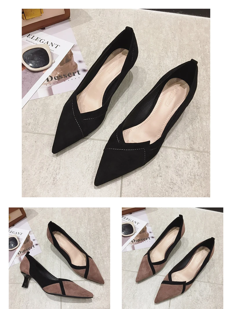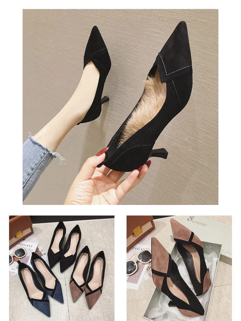 Женские туфли на высоком каблуке, заостренный носок, удобные бархатные туфли с кошачьими корнями, разные цвета, весна-осень