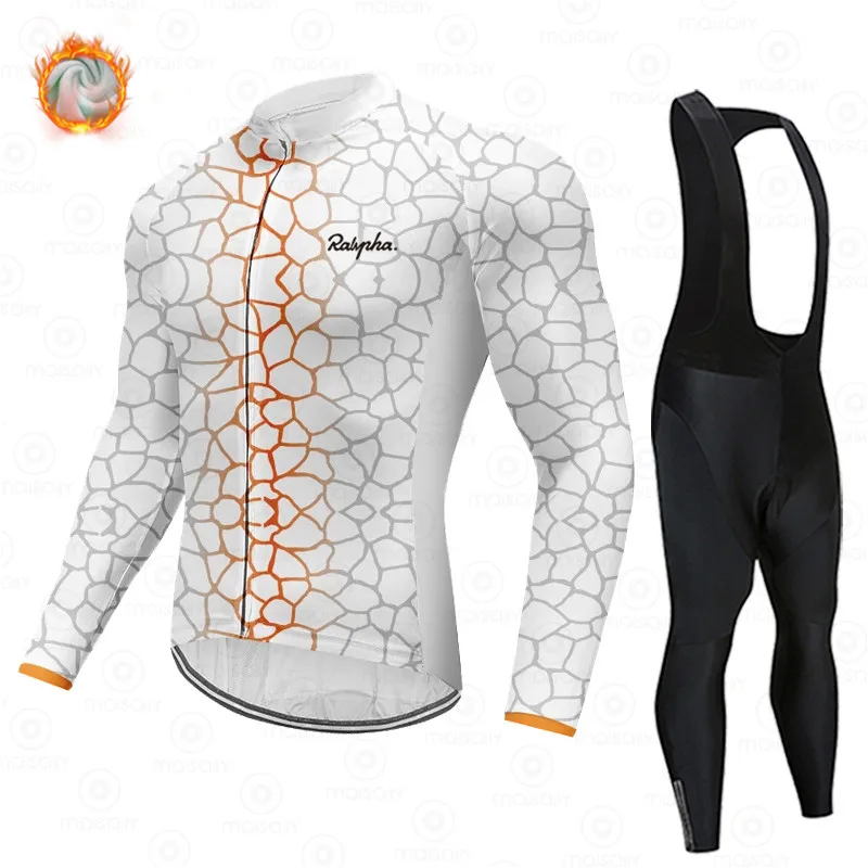 Новый зимний теплый флисовый комплект, одежда для велоспорта, Мужской трикотажный костюм Raphaful, спортивная одежда для езды на велосипеде и горном велосипеде, теплые комплекты с нагрудниками и брюками, одежда