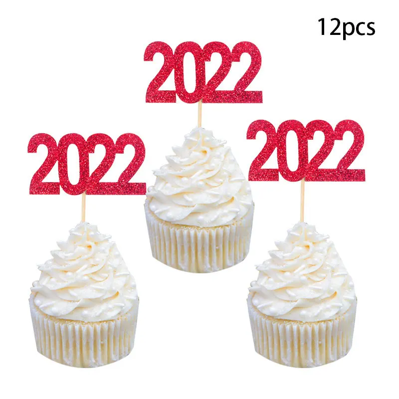 12 шт. Блестящий Топпер для торта 2022 новый год 2022 зубочистка с ...