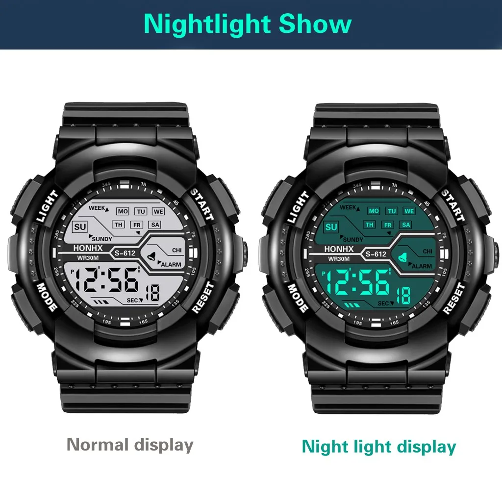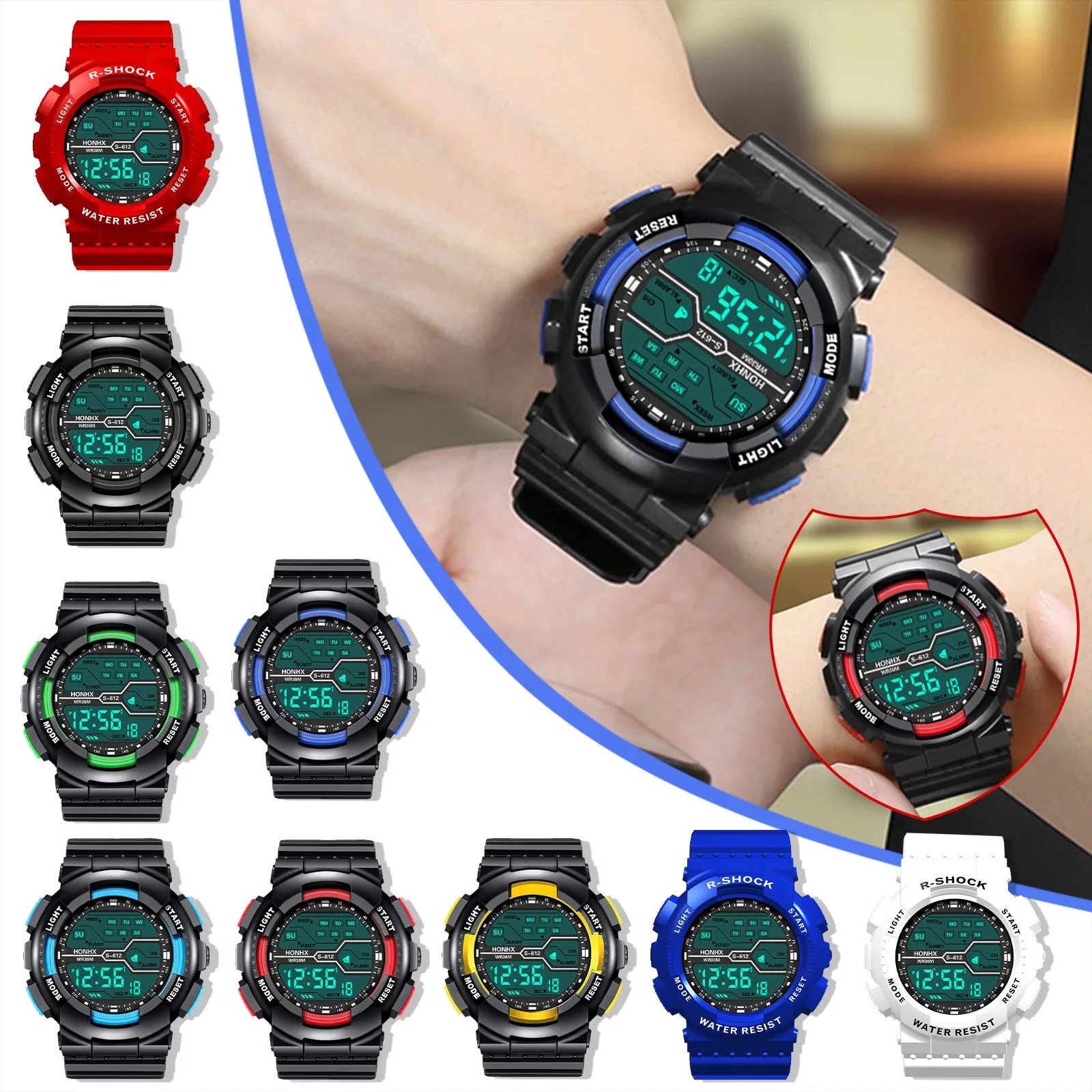 Модные водонепроницаемые мужские спортивные наручные часы для мальчиков с ЖК-дисплеем и цифровым секундомером