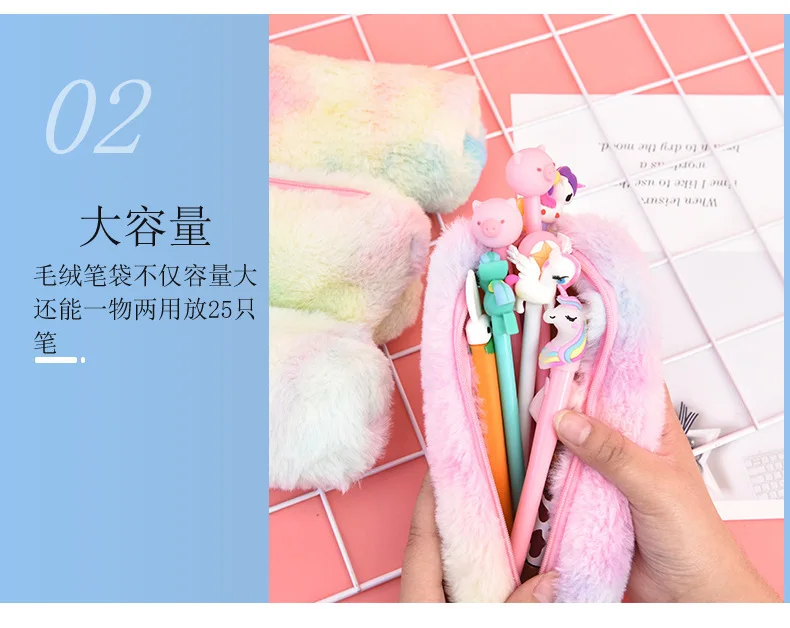 Чехол для карандашей, плюшевый, с градиентным рисунком, для девочек