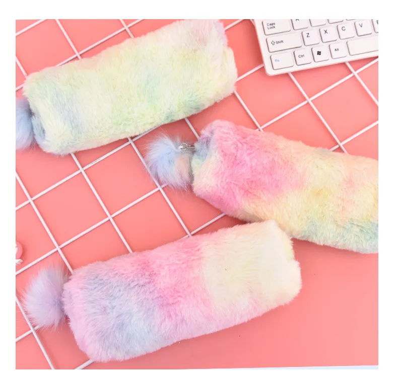 Кавайный чехол для карандаша градиентный цветной плюшевый чехол для...
