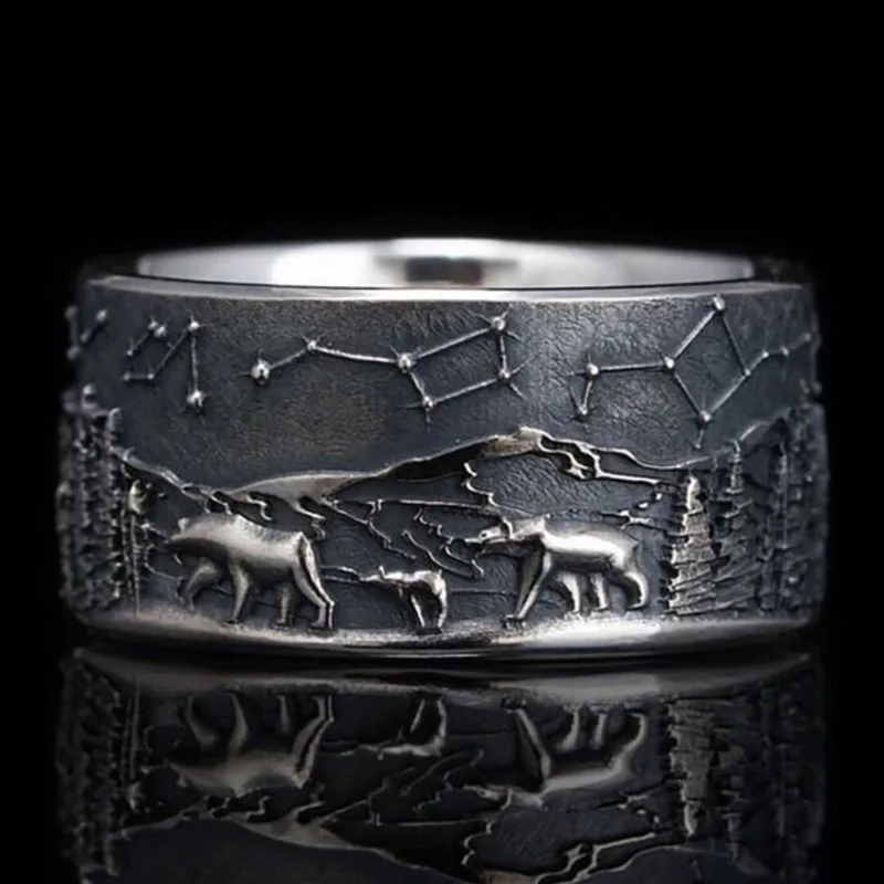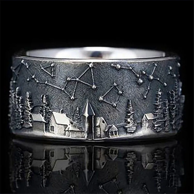 Креативные кольца 12 созвездий, Звездный замок в лесу, дом волка, дерево, для женщин и мужчин, ретро, модные украшения для вечеринок