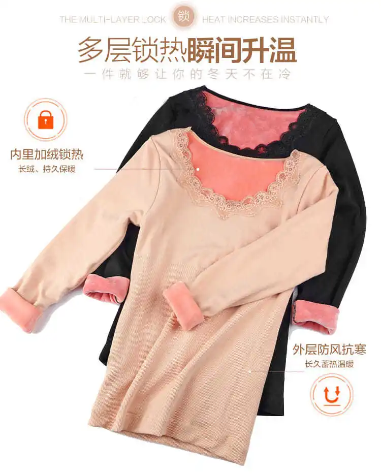 Зимнее женское термобелье, модное облегающее боди, сексуальное кружевное дизайнерское флисовое кружевное Женское зимнее белье, теплый пуловер