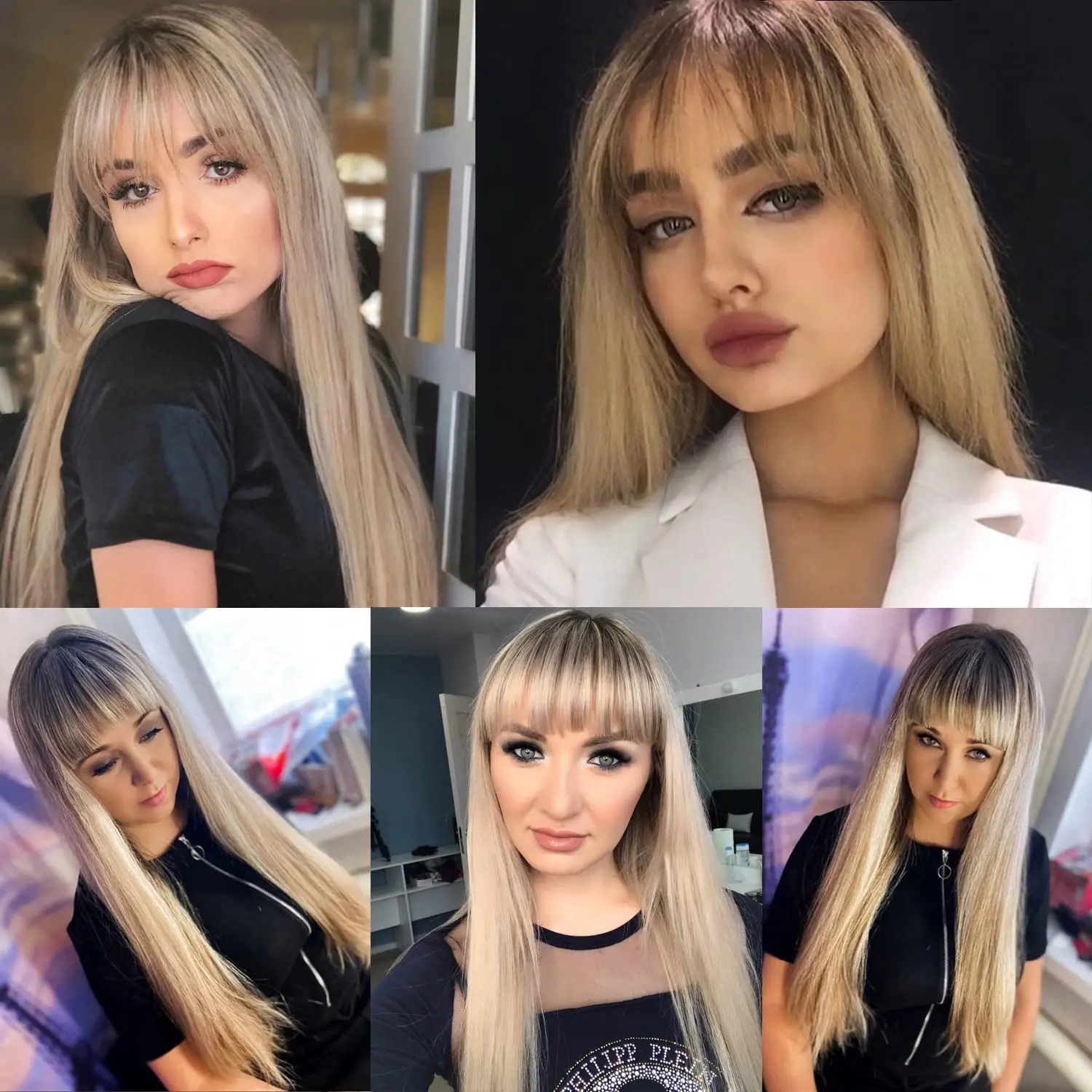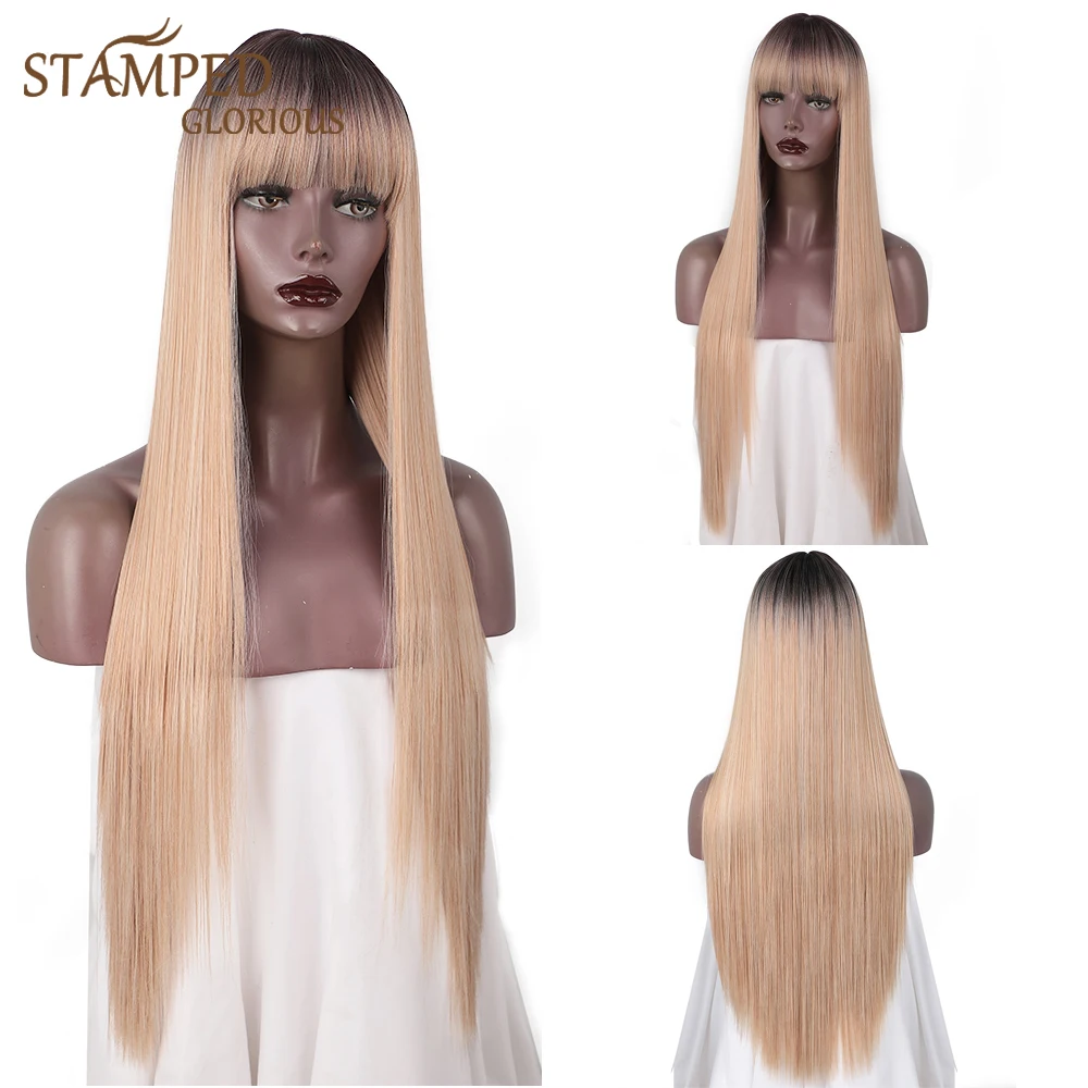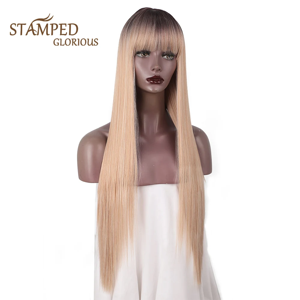 Женские Длинные прямые синтетические парики с челкой, с эффектом омбре