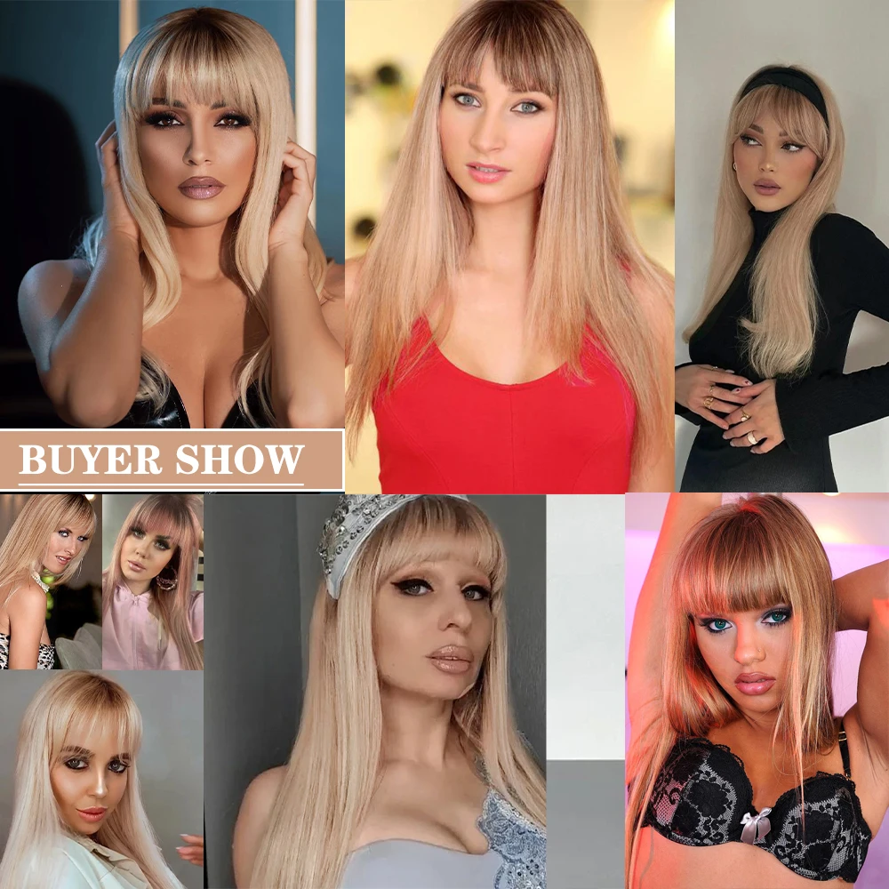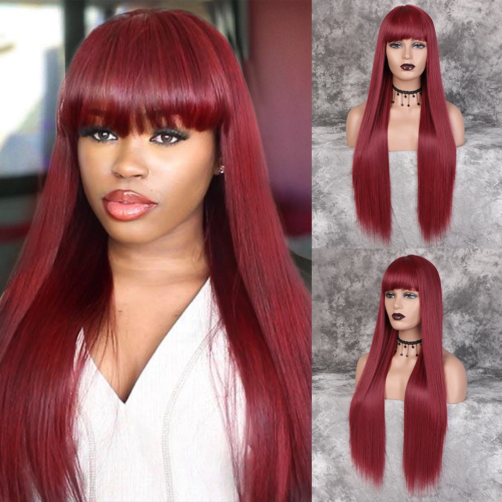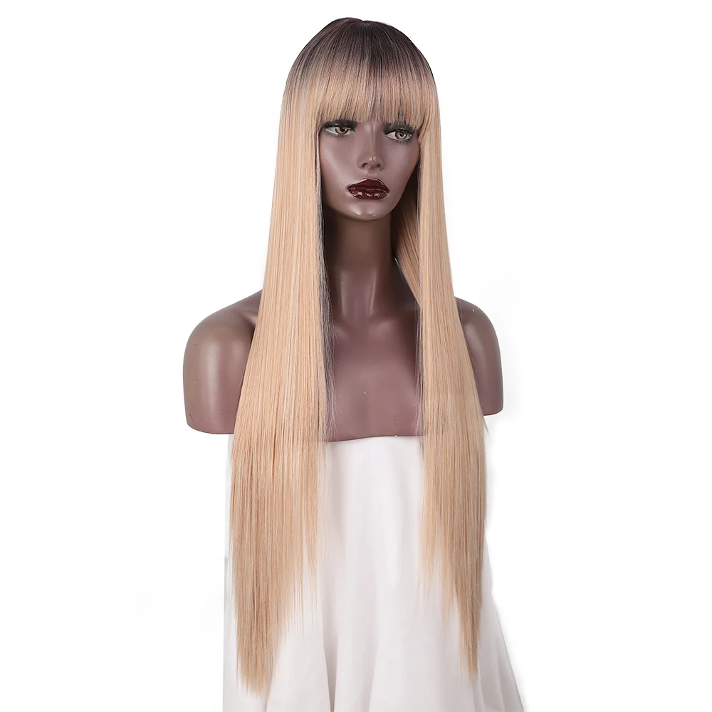 Женский синтетический парик с челкой, с длинными прямыми волосами