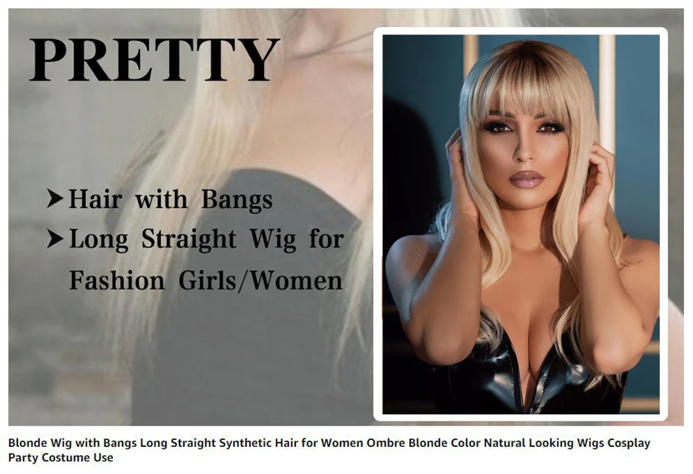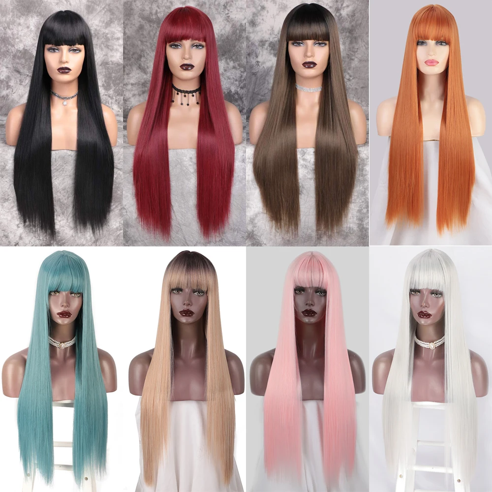 Длинные прямые синтетические парики с челкой, Парик Из Натурального...