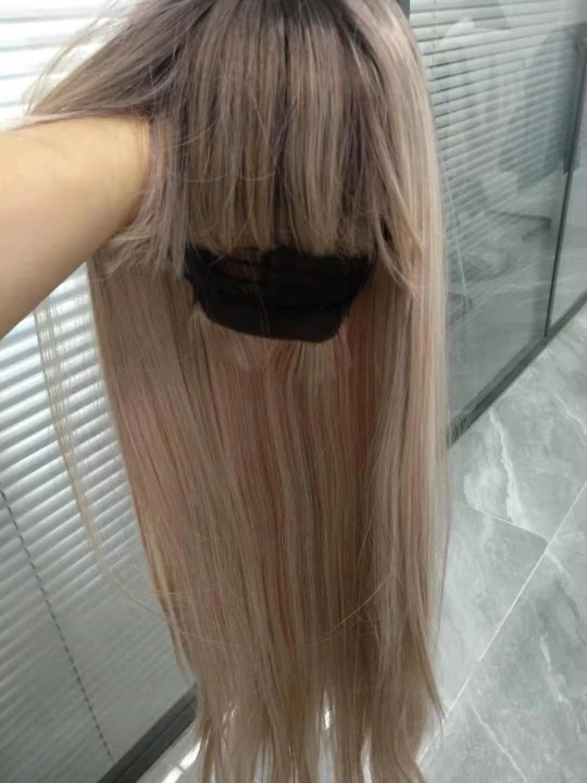 Светло-розовые синтетические парики с эффектом омбре и челкой, пари...