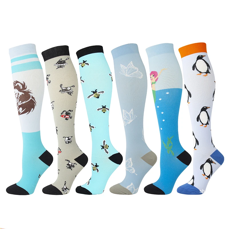 Компрессионные чулки унисекс, спортивные нейлоновые чулки для бега, путешествий, Счастливого здоровья, компрессионные женские и мужские носки с животными