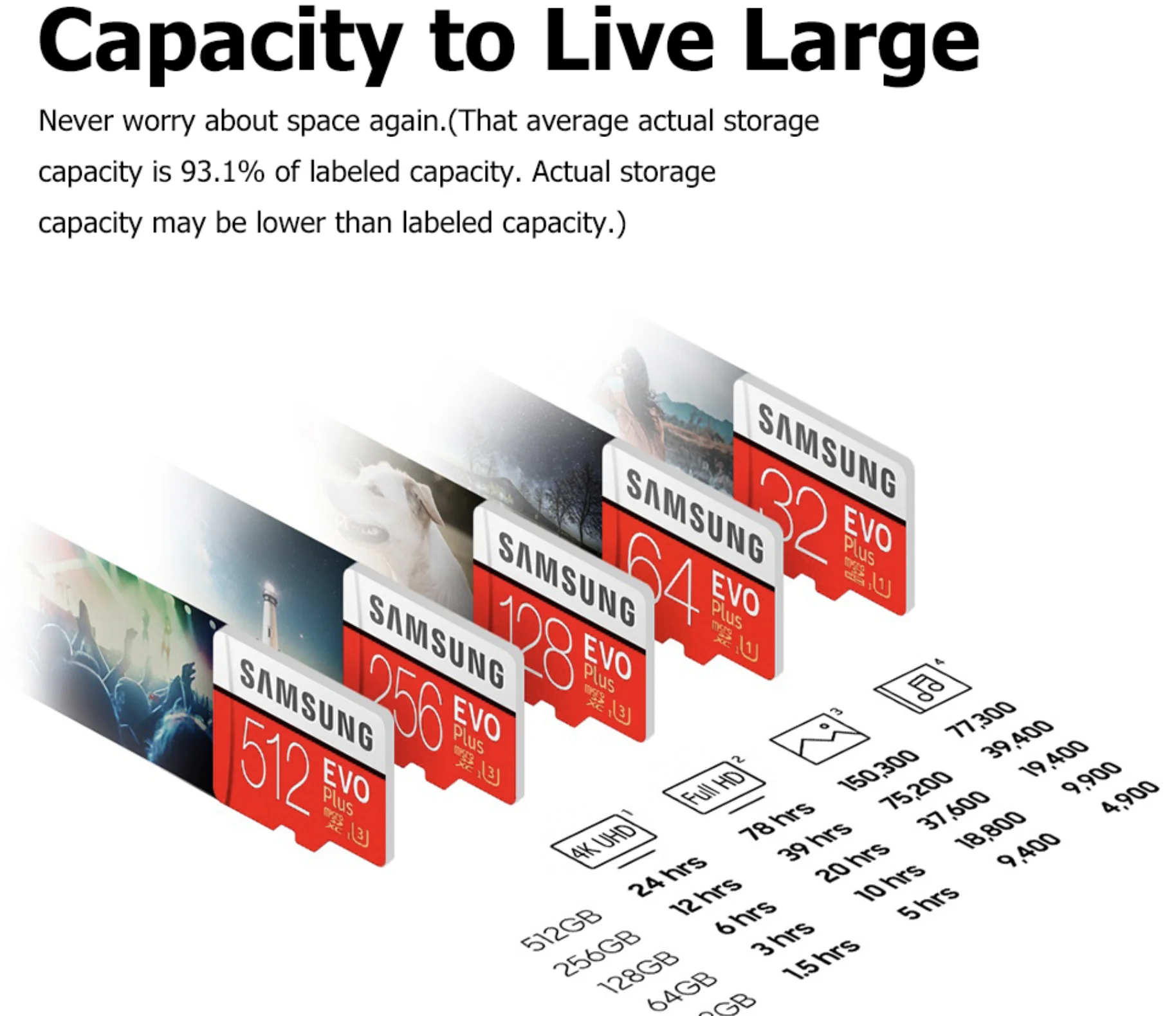 Больше места и более высокая скорость. Освободите свои устройства с самой большой емкостью и высокой скоростью чтения/записи в своем классе, идеально подходит для видео 4K UHD. * С удивительной производительностью и надежностью, EVO Plus позволяет сохранять и ценить Богатство жизни.