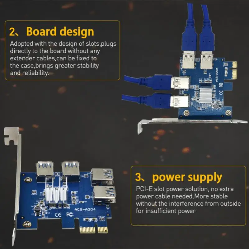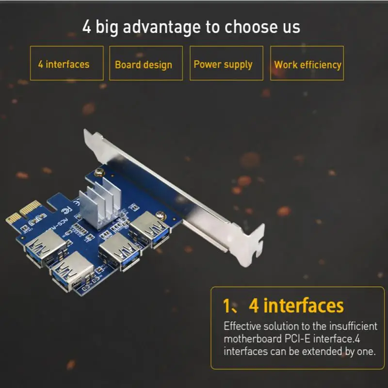 Hot PCIE PCI-E PCI Express Riser Card 1x To 16x 1 To 4 USB 3.0 Slot Multiplier Hub Adapter For Bitcoin Mining Miner BTC Devices