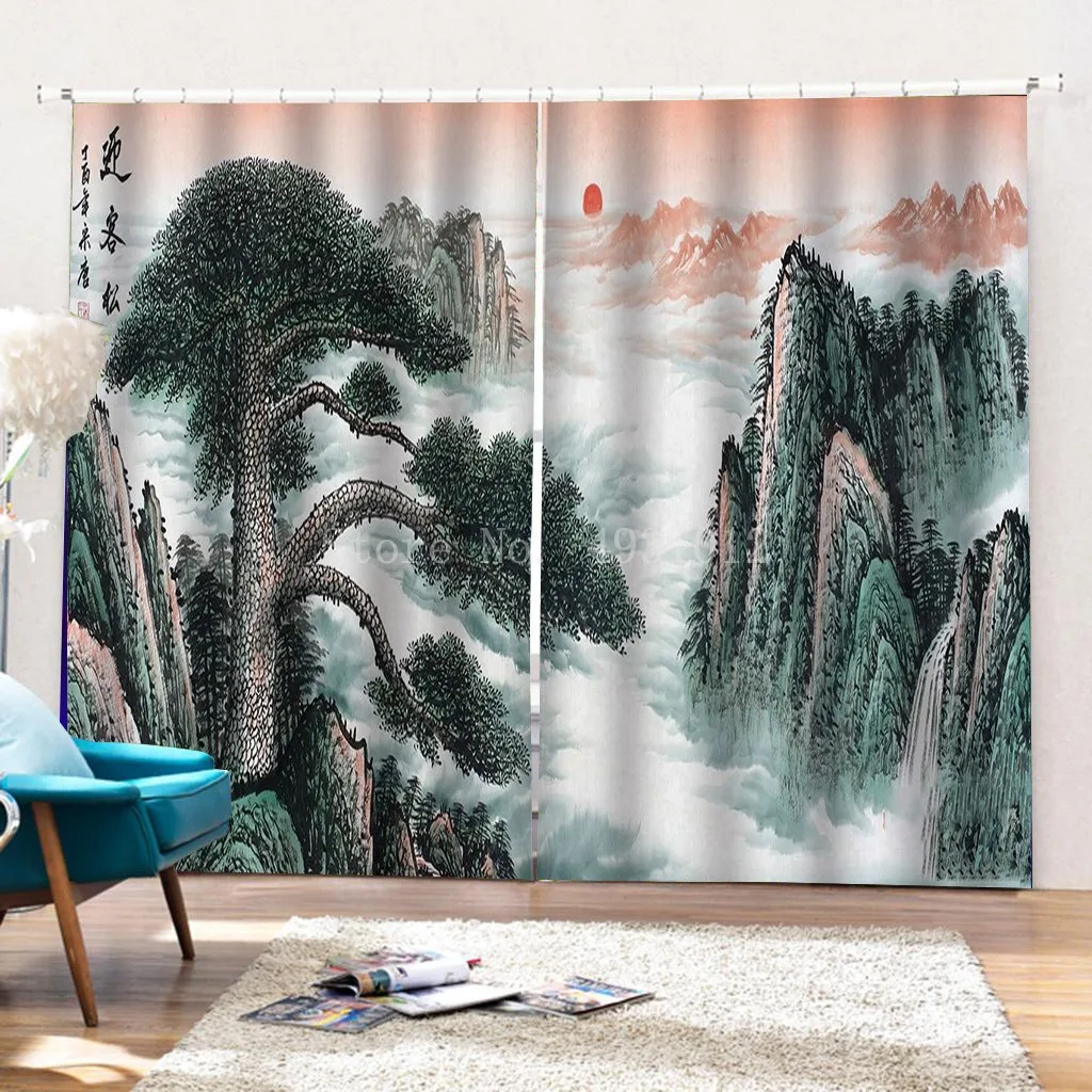 HD занавески с пейзажным рисунком, с изображением сосны, для гостиной, занавески для кабины, для кухни, спальни, художественный декор, ультра микро затенение
