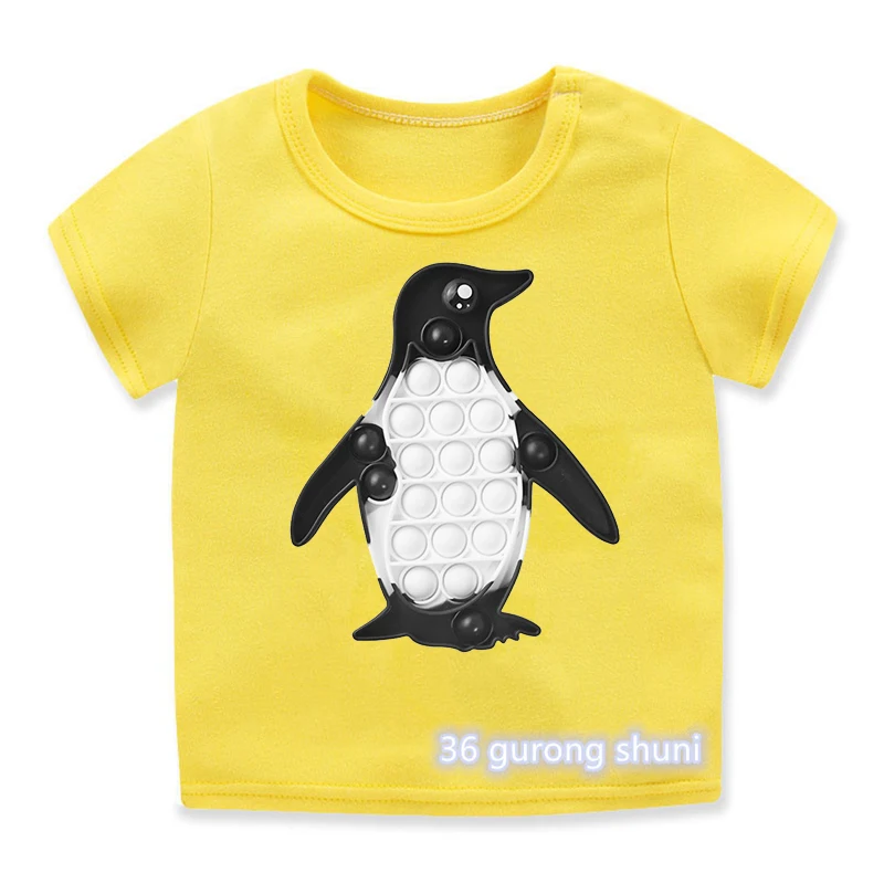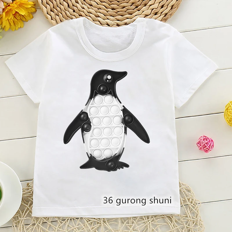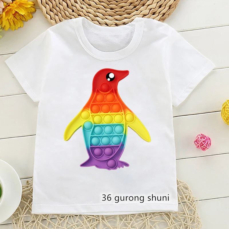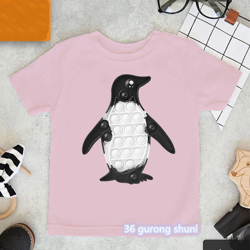 Kawaii Красочная Одежда в виде пингвина, животных, фиджет-Принт, футболка унисекс, поп ит, поп, поп, футболка для мальчиков и девочек, футболки, топы