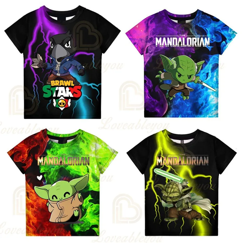 Футболка с шипами и максимальным мандалорианским малышом Йодой, топы с героями мультфильмов, одежда для подростков, Детская футболка, игровая 3D футболка для мальчиков и девочек, рубашка Салли Леон