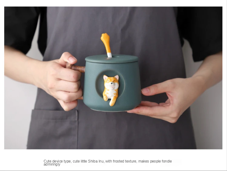 Керамическая индивидуальная Милая кружка с крышкой и ложкой, домашняя мультяшная кофейная чашка, чашка с собакой Сиба-ину, подарок для напитков