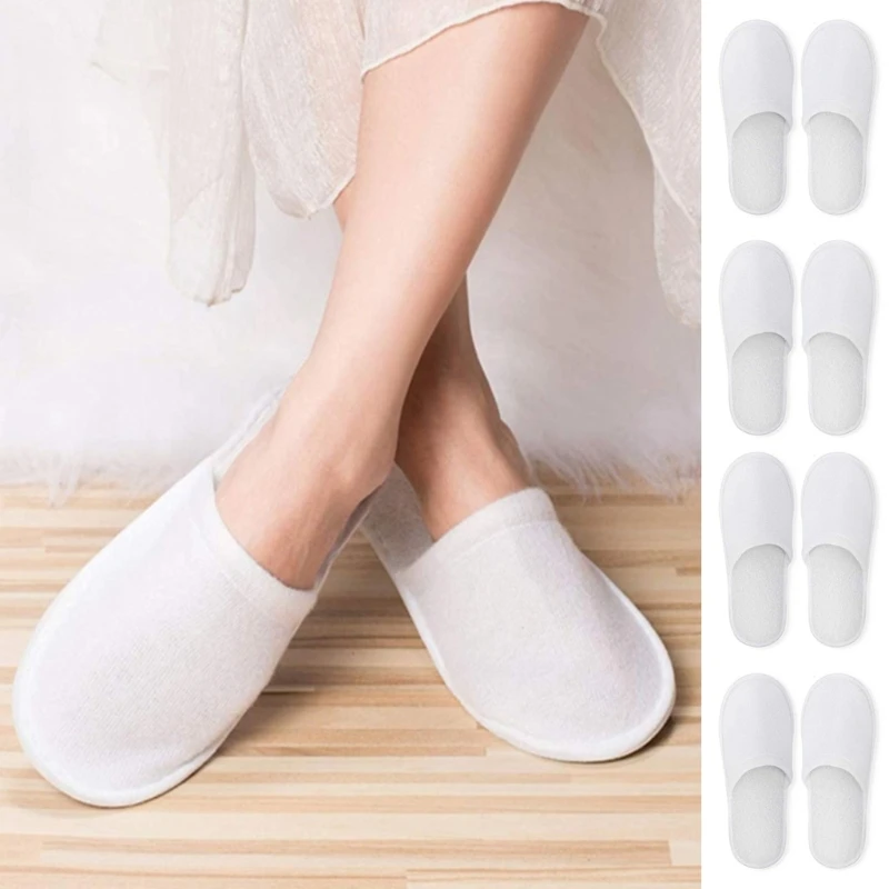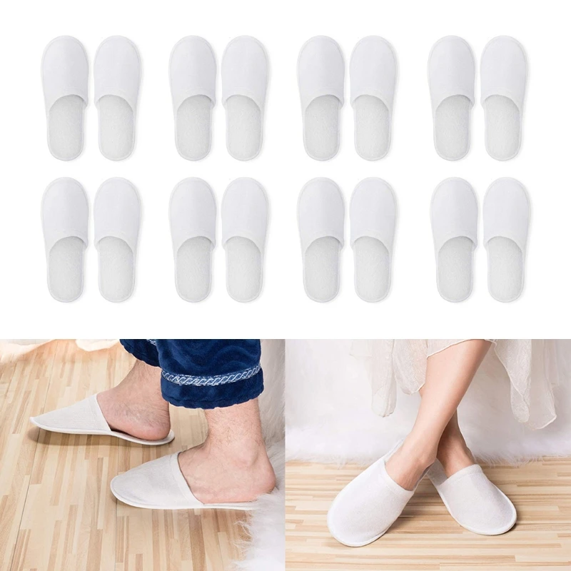 Одноразовые тапочки, 12 пар, одноразовые тапочки с закрытым носком, подходящий размер для мужчин и женщин, для отеля, для гостей спа, бу, (белые)