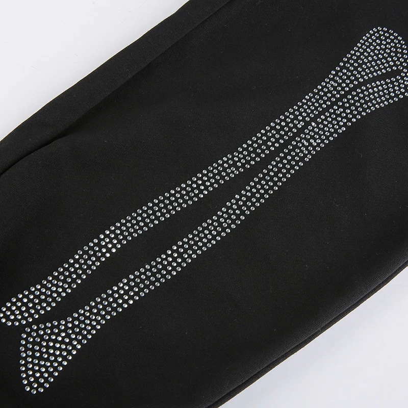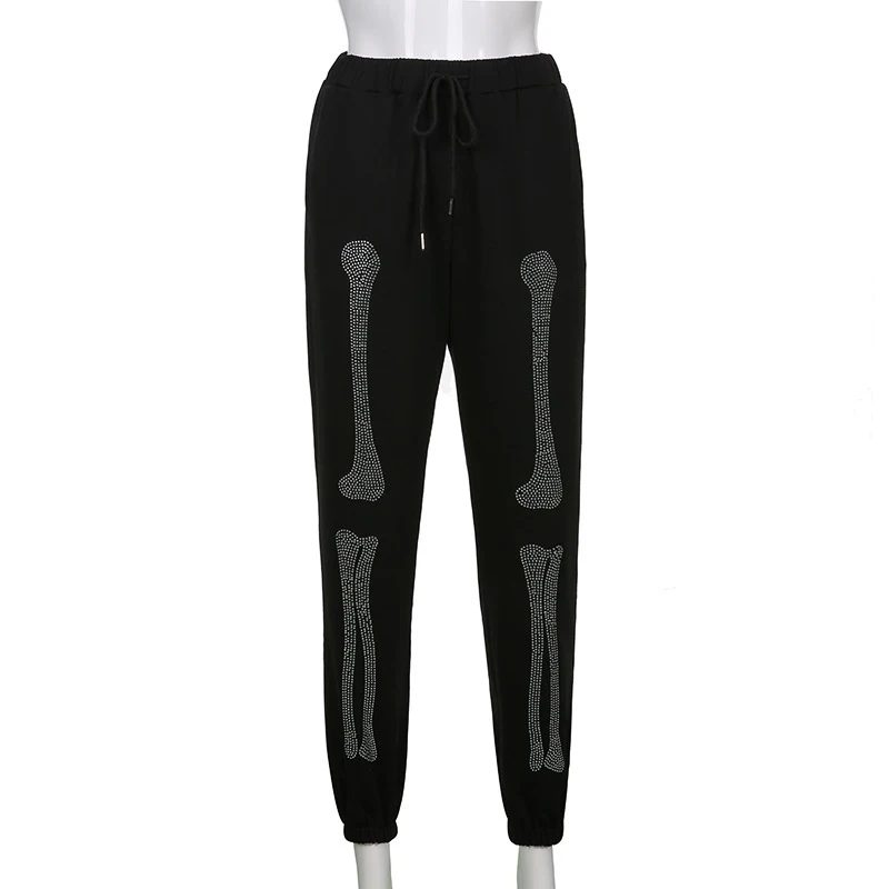 Женские свободные брюки с завышенной талией стразы, уличные осенние повседневные спортивные брюки со шнуровкой, черные длинные брюки