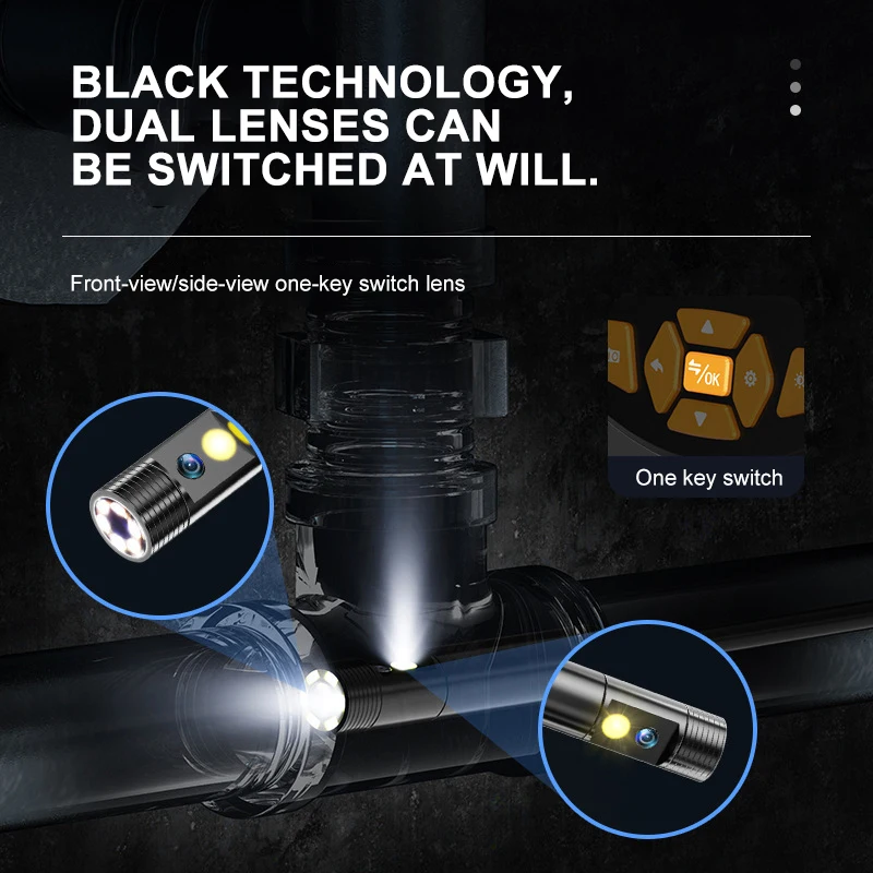 Промышленный эндоскоп с двумя объективами, Бороскоп с двумя камерами s, эндоскопическая камера 10 м для осмотра водопроводных труб и видео, для сточных вод с экраном