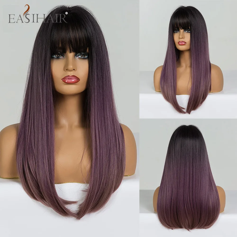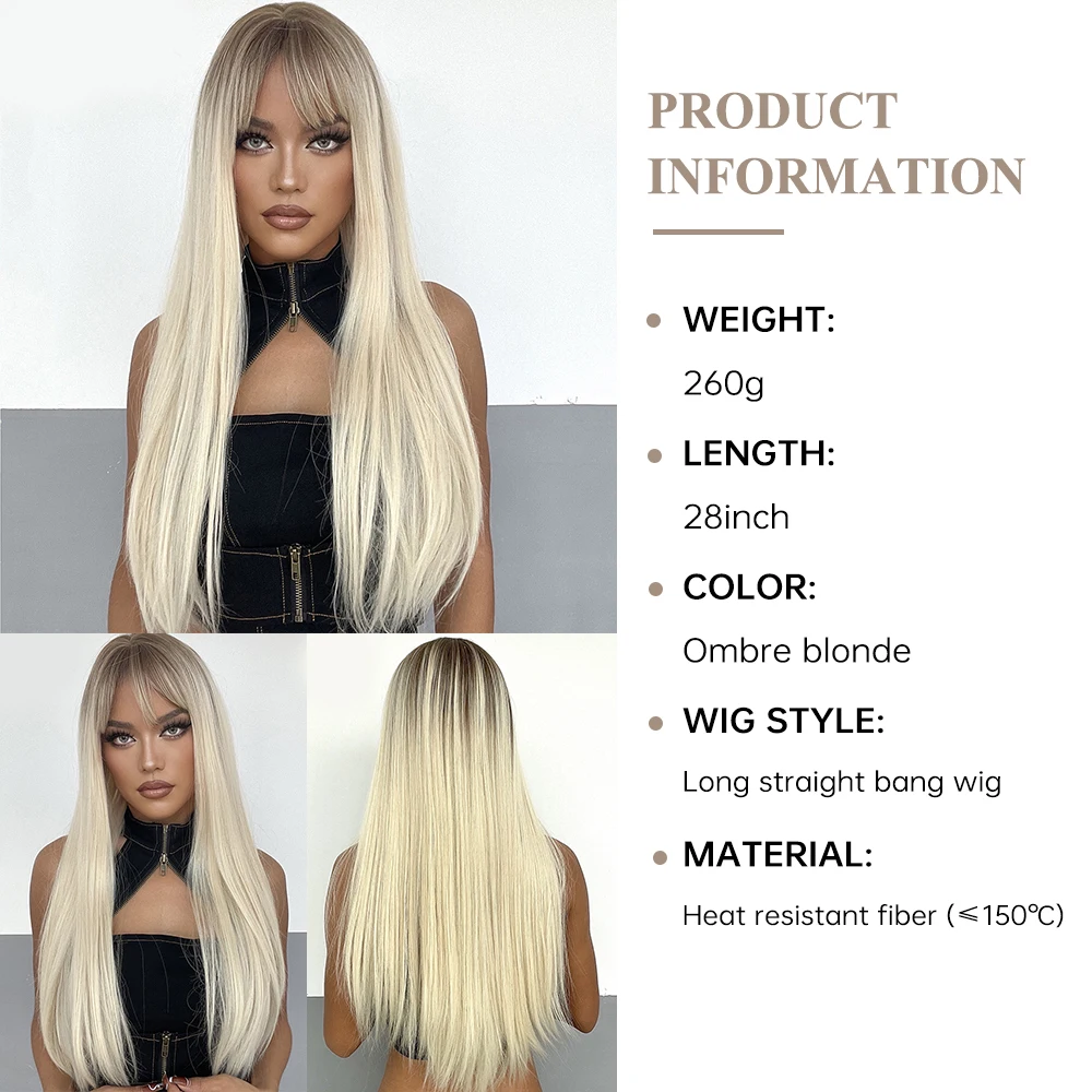 Светлые Платиновые светлые синтетические прямые парики с челкой, Длинные женские парики Омбре, термостойкие натуральные волосы