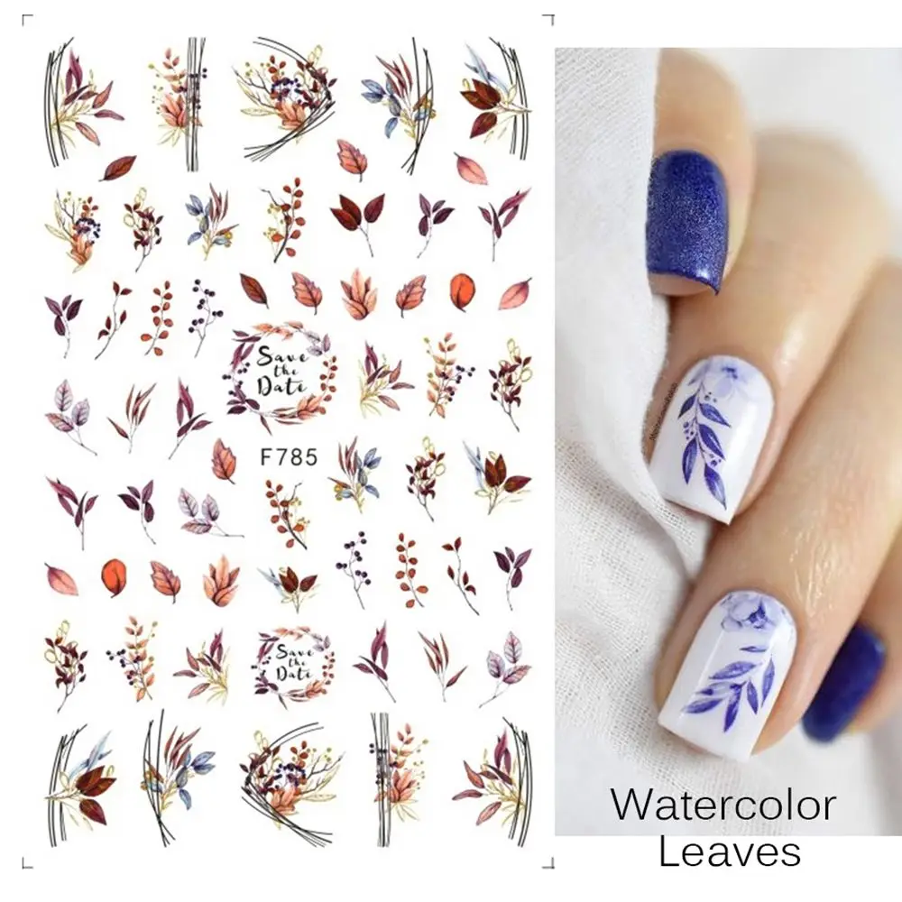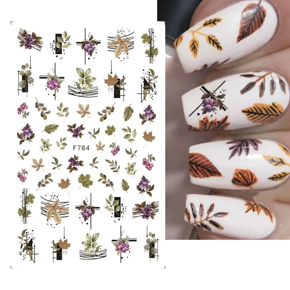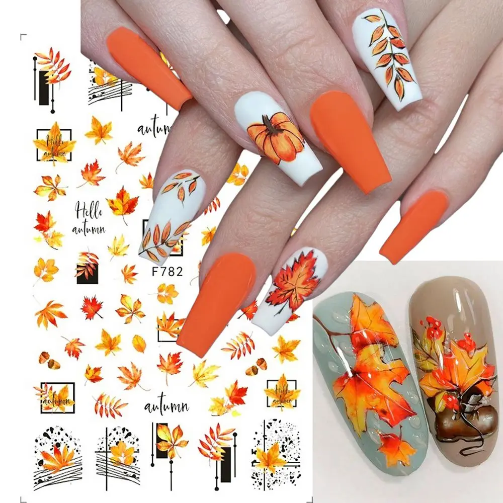 Осенние кленовые цветы, наклейки для дизайна ногтей, наклейки для л...