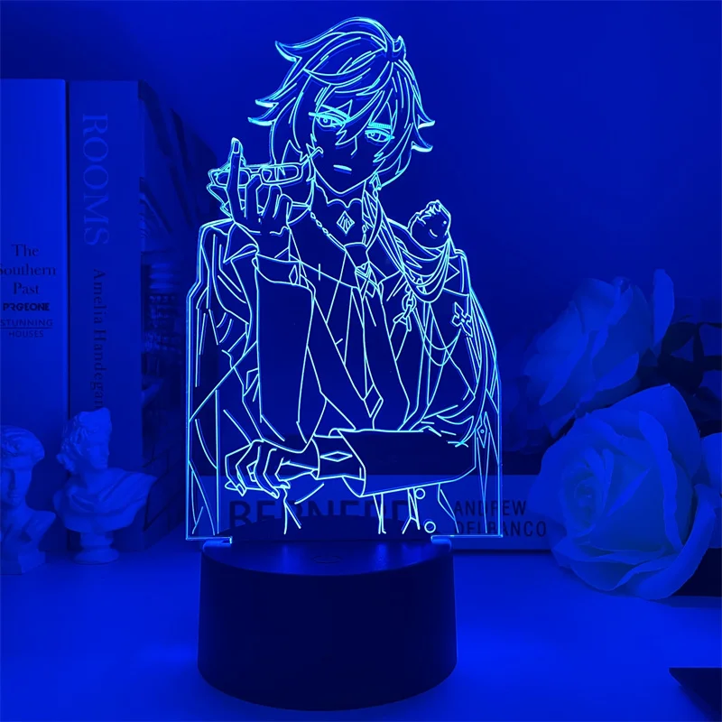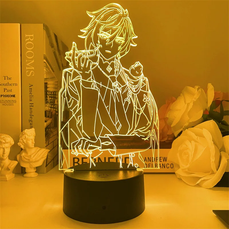 Ночной светильник Genshin Impact Zhongli, 3D модель периферической игры, светодиодная цветная иллюзия, подарок для детей, украшение для спальни, светильник ка