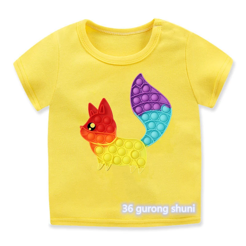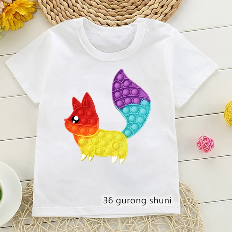 Kawaii красочный Дельфин ранняя Лиса животные одежда фиджет игрушки печать футболка поп ит поп это футболка для мальчиков девочек футболки топы