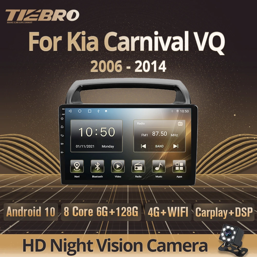Автомагнитола Tiebro 2DIN Android 10 для Kia Carnival VQ Автомобильный приемник GPS-навигация DSP Авторадио Carplay DSP сенсорный экран 6G + 128G