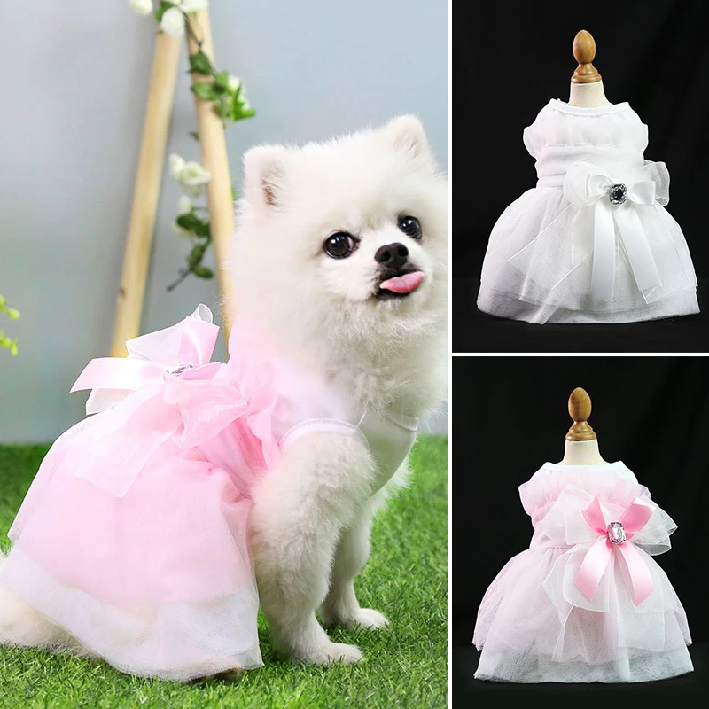 Милое Платье в стиле принцессы для домашних питомцев, свадебное платье с милым бантом, простое универсальное платье белого и розового цвета для кошек и принцесс, товары для домашних животных
