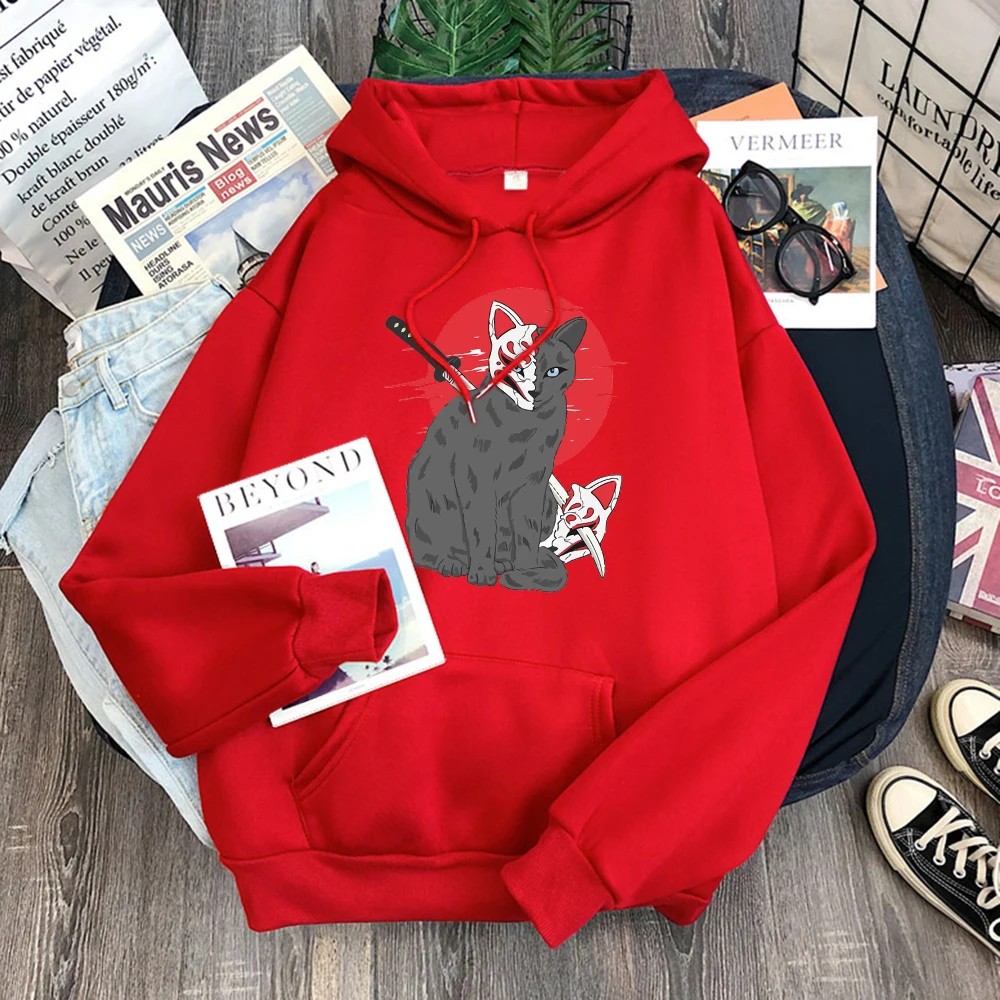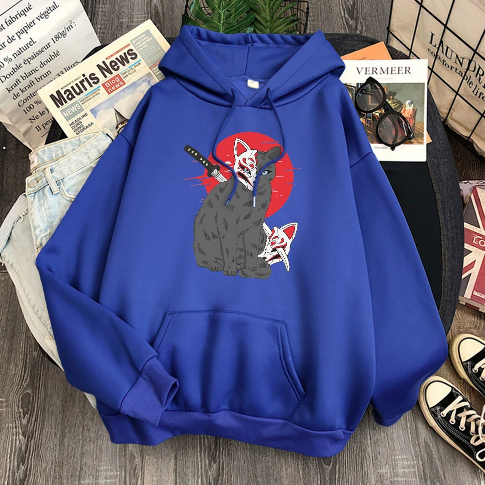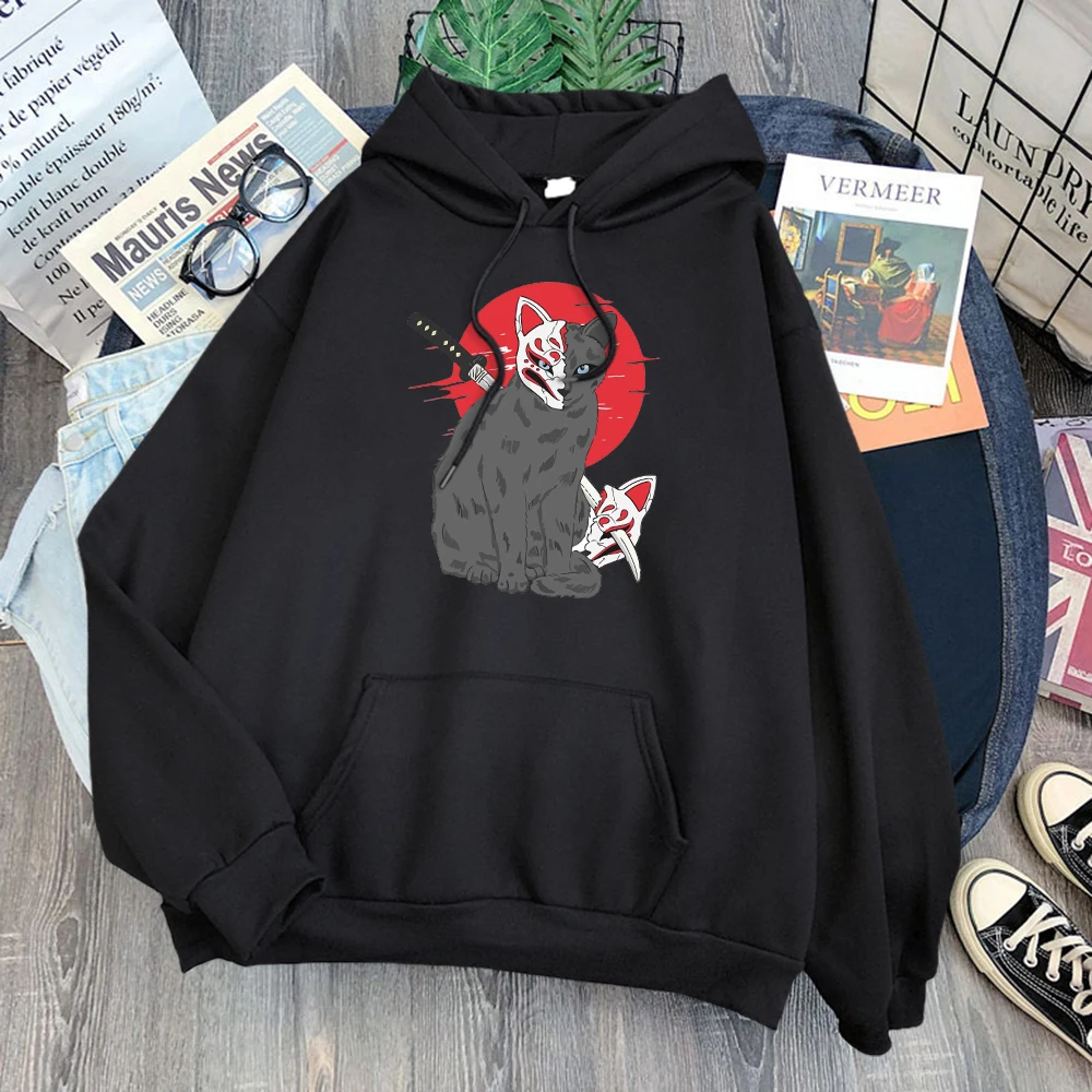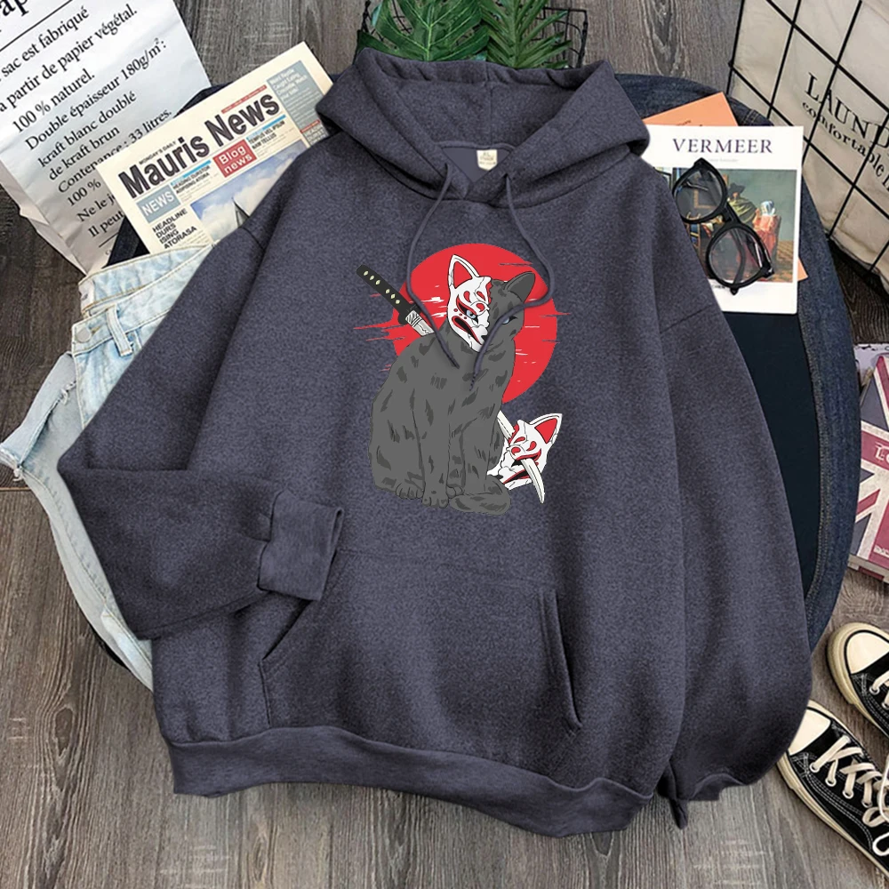 Мужская одежда в японском стиле с принтом кошки Shinobi, флисовая т...