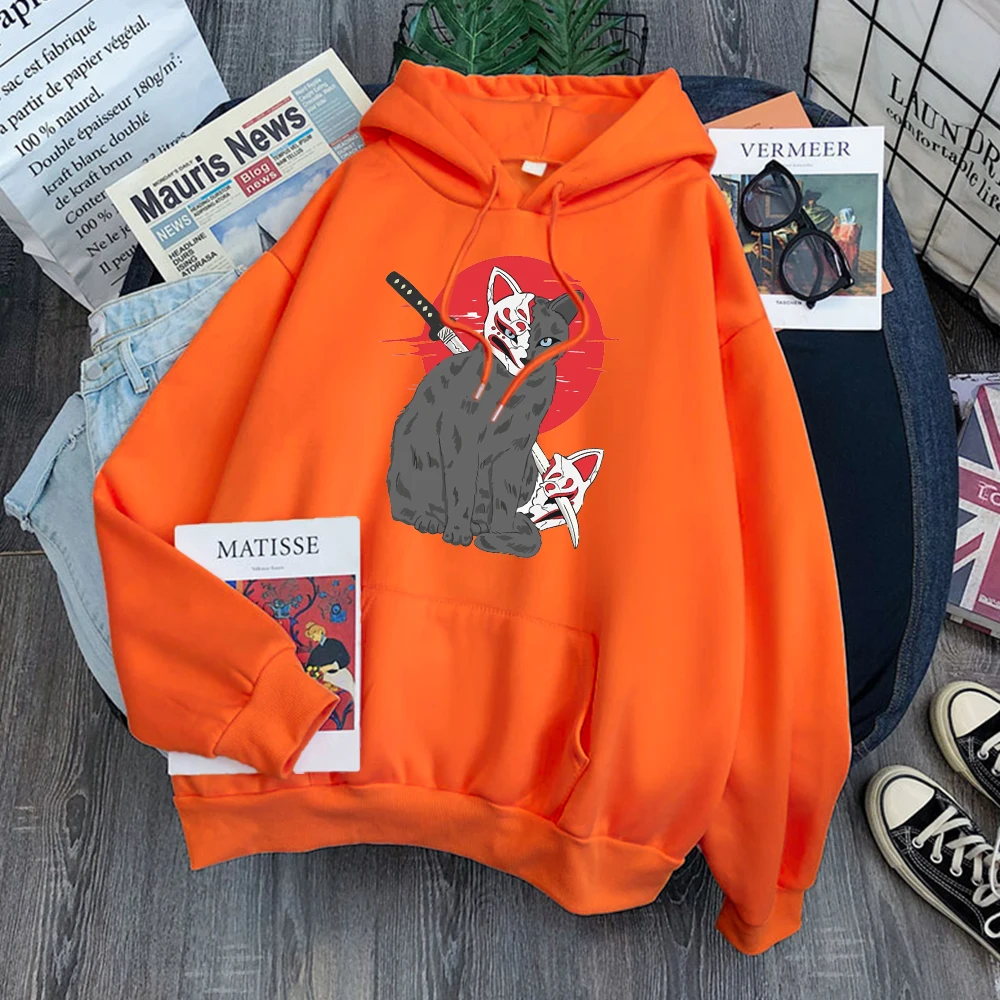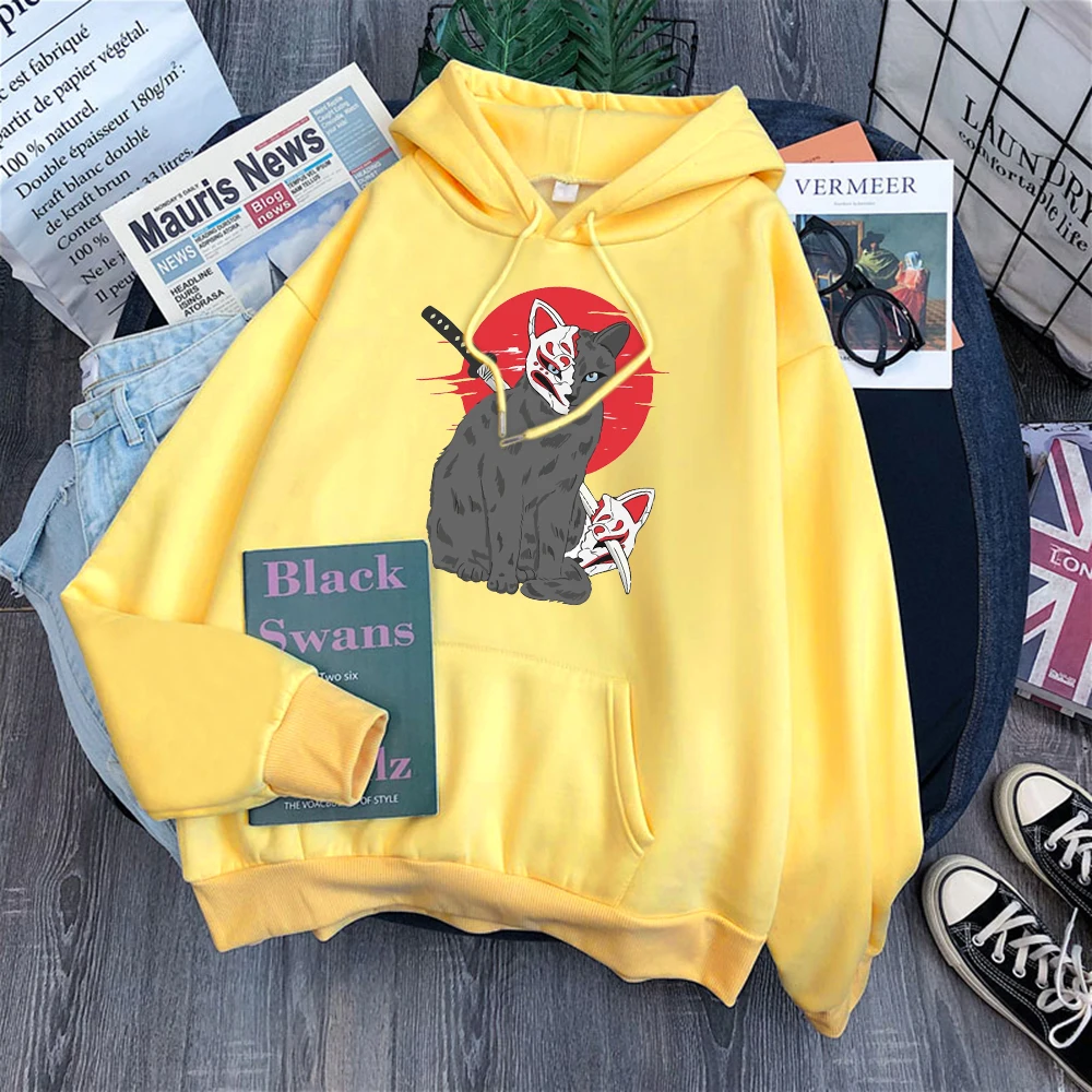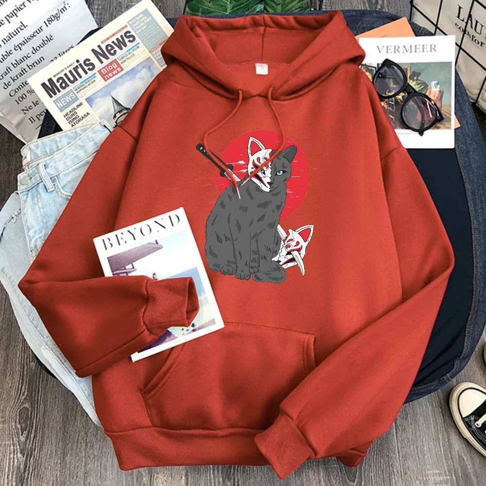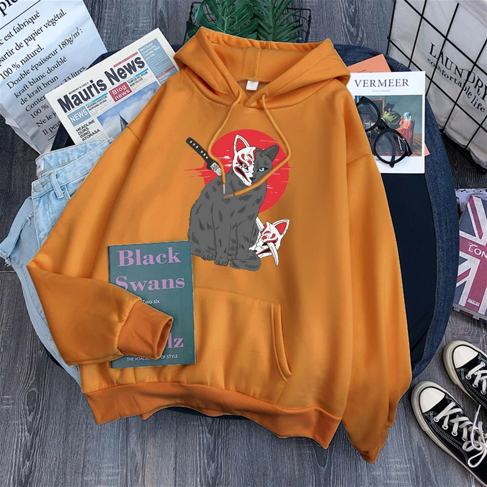 Мужская одежда в японском стиле с принтом кошки Shinobi, флисовая т...