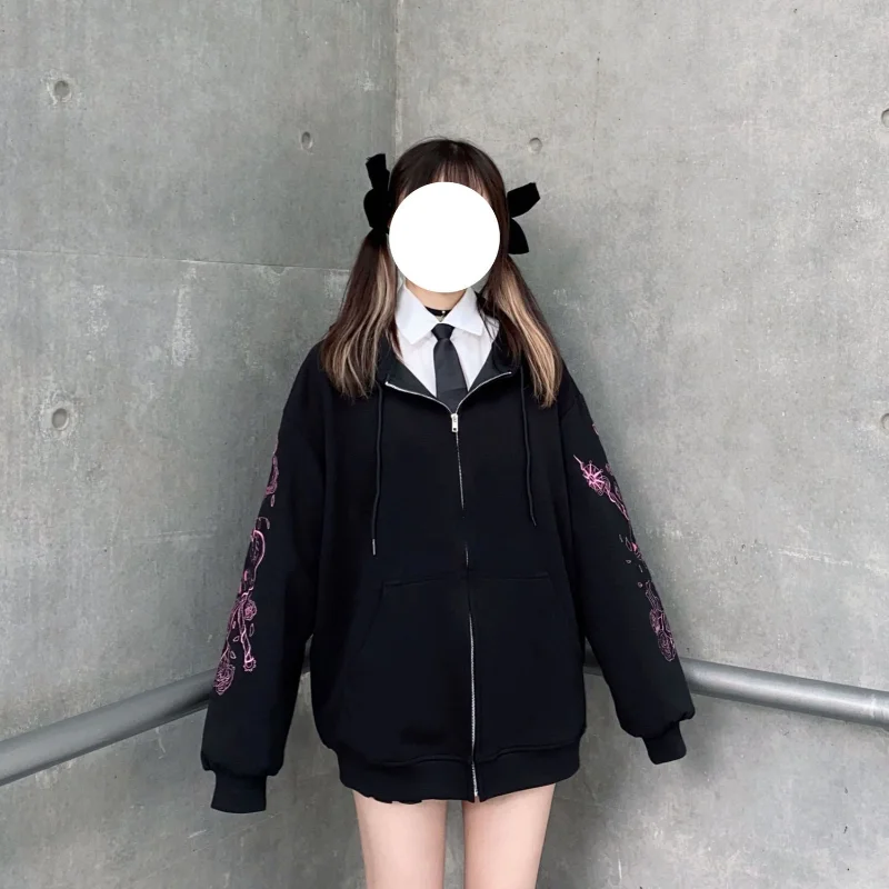 Худи HOUZHOU готика, Харадзюку, топы на молнии в стиле панк, японская свободная уличная одежда, пальто с капюшоном в стиле преппи и длинным рукавом, модные наряды