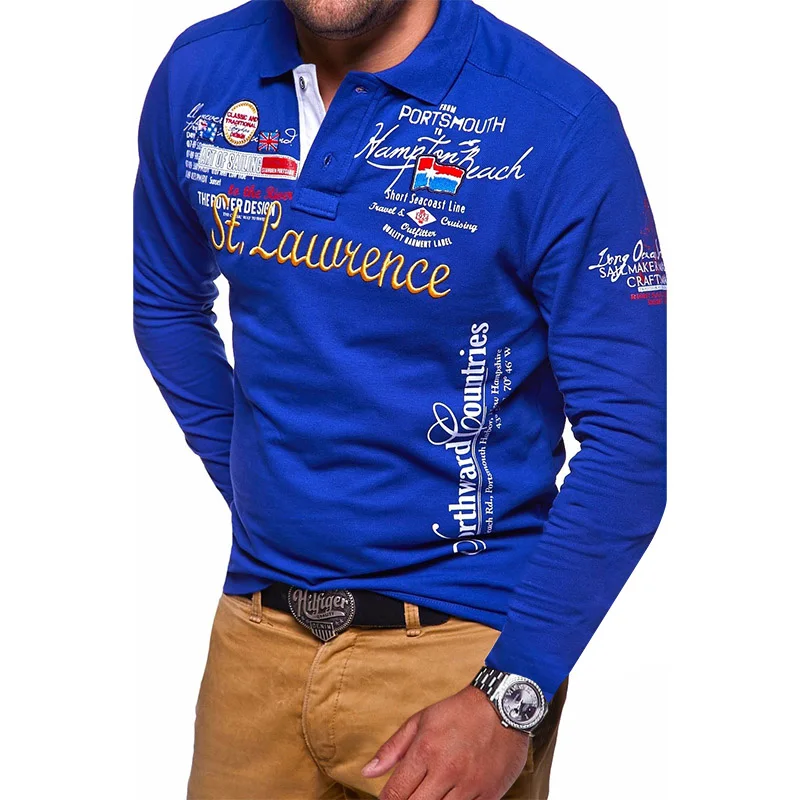 Рубашка-поло мужская с длинным рукавом, хлопок, дышащая, Повседневная приталенная, с принтом
