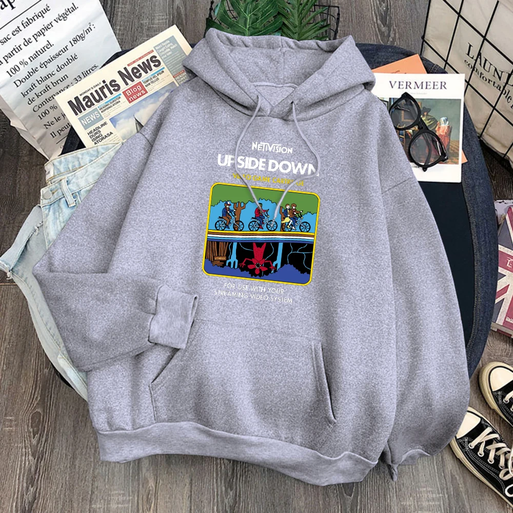 Толстовка мужская с круглым вырезом, уличная одежда в стиле Харадзюку, флисовая кофта с капюшоном, с рисунком в стиле очень странные дела, осень