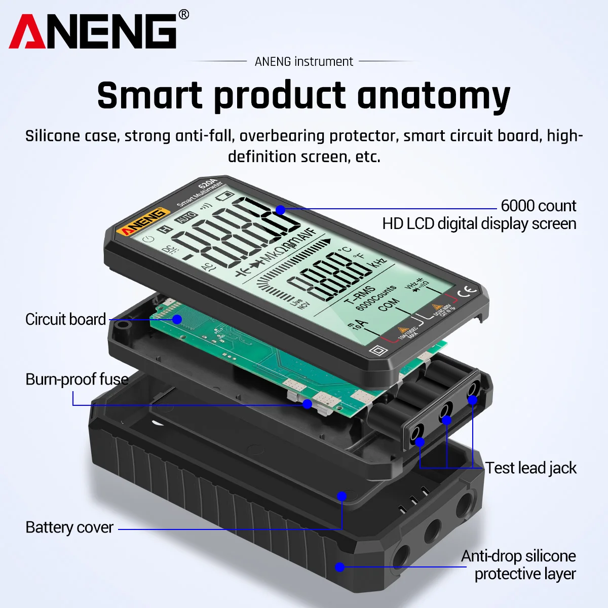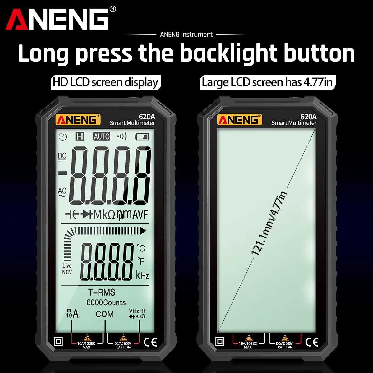 ANENG 3,5-дюймовый ЖК-дисплей ACDC Цифровой мультиметр, ультрапортативный мультиметр True-RMS, мультиметр с автоматическим выбором диапазона, мультитестер