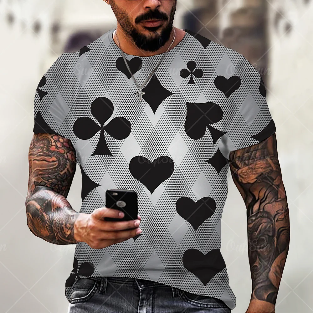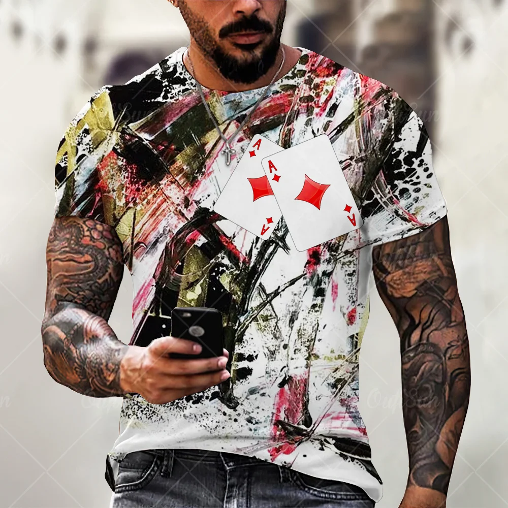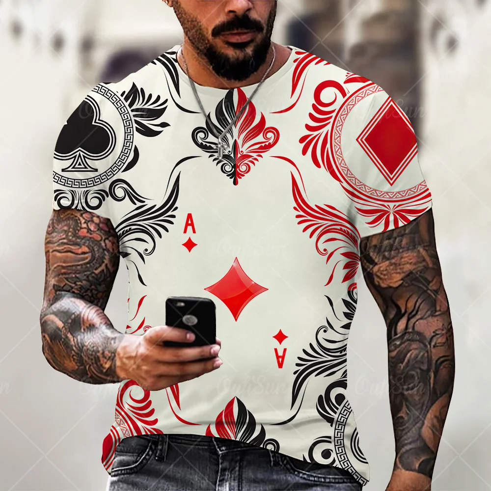 Мужская летняя рубашка с 3D-принтом в виде покера, модные футболки большого размера, повседневные мужские футболки с коротким рукавом, 2021