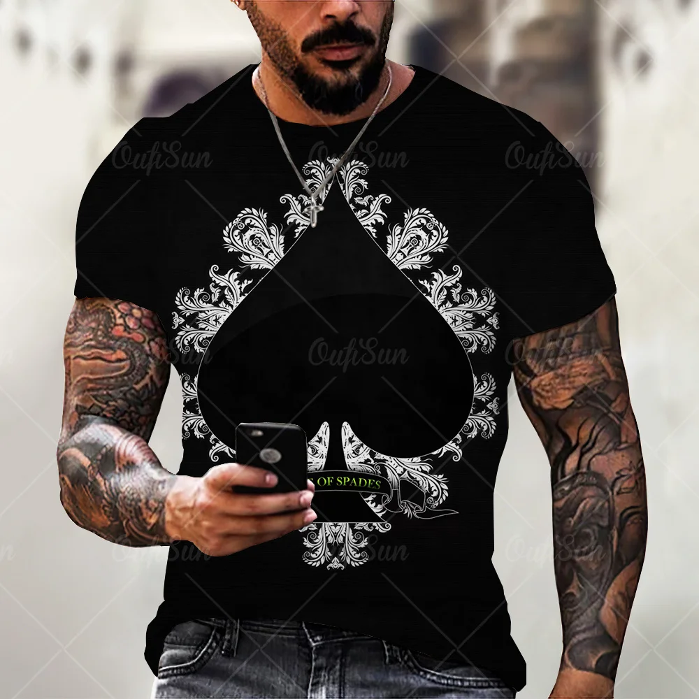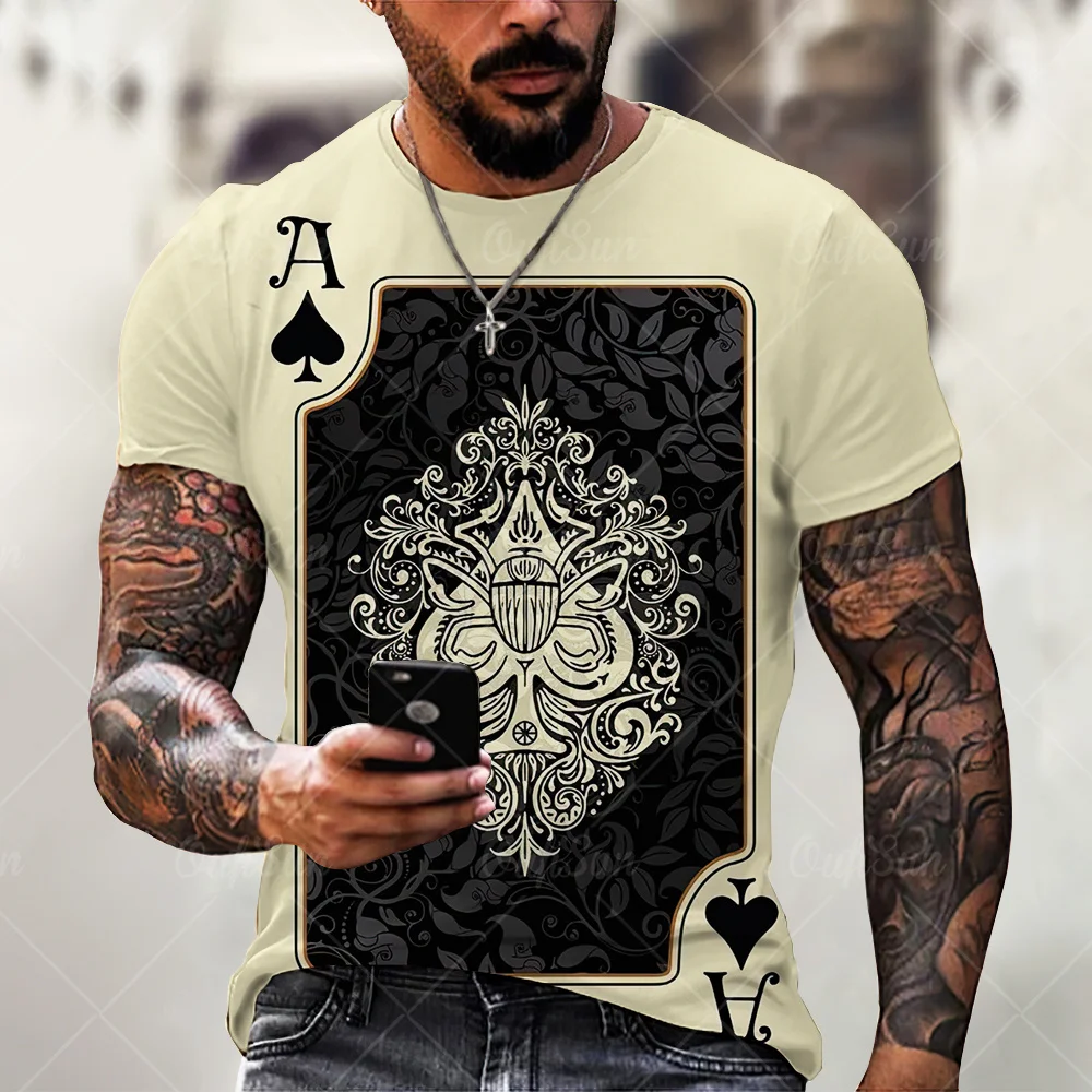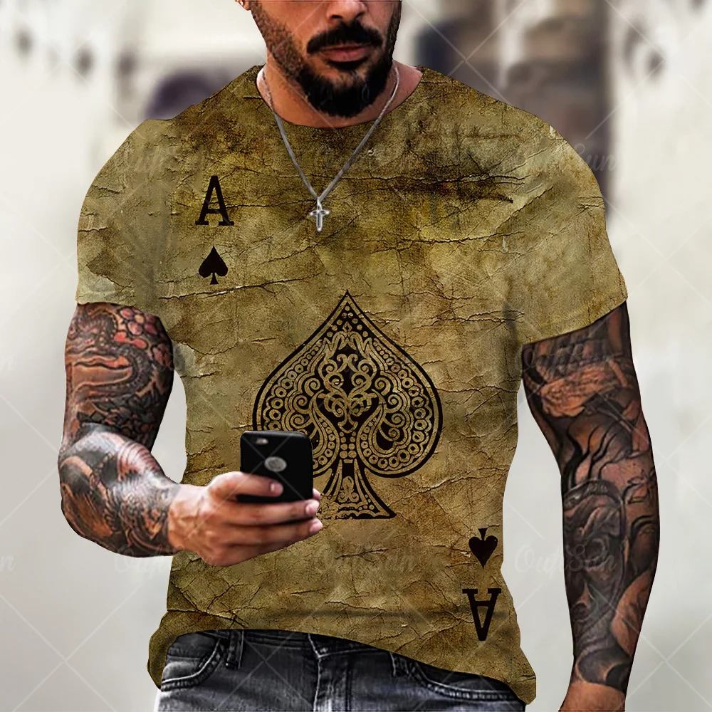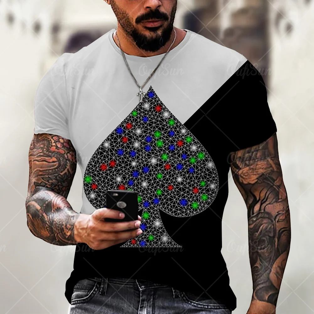 Мужская летняя рубашка с 3D-принтом в виде покера, модные футболки большого размера, повседневные мужские футболки с коротким рукавом, 2021