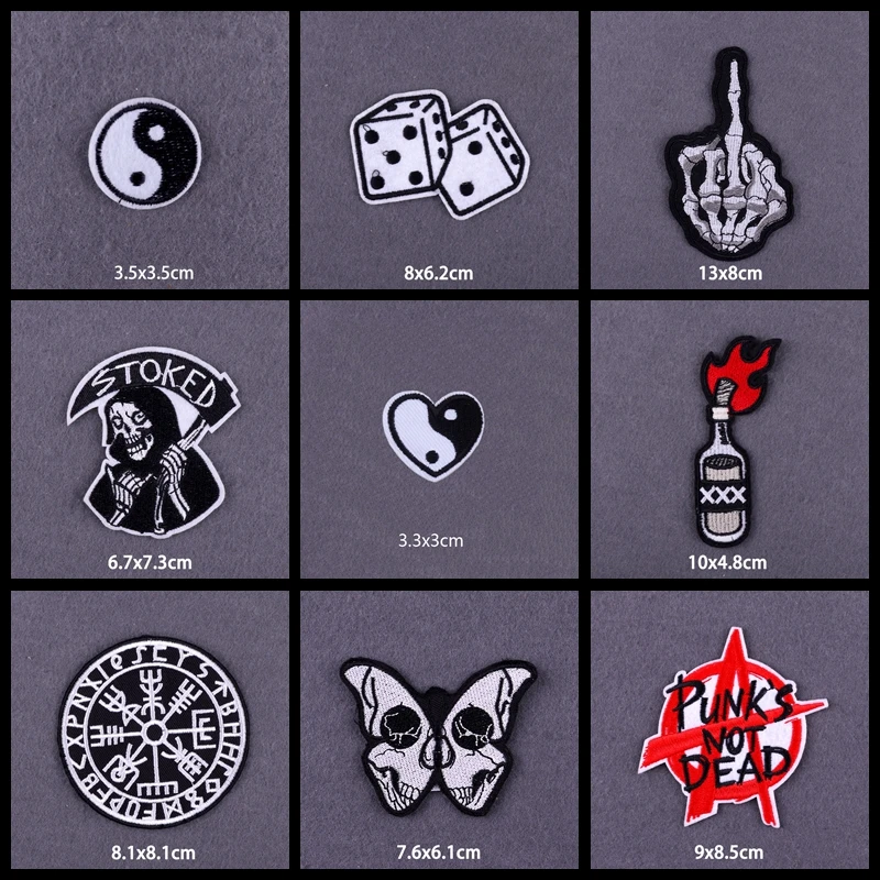 Черно-белые патчи в стиле панк-рок, термоклейкие нашивки с вышивкой...