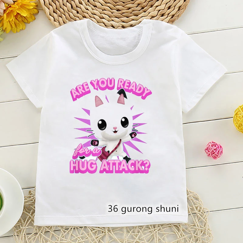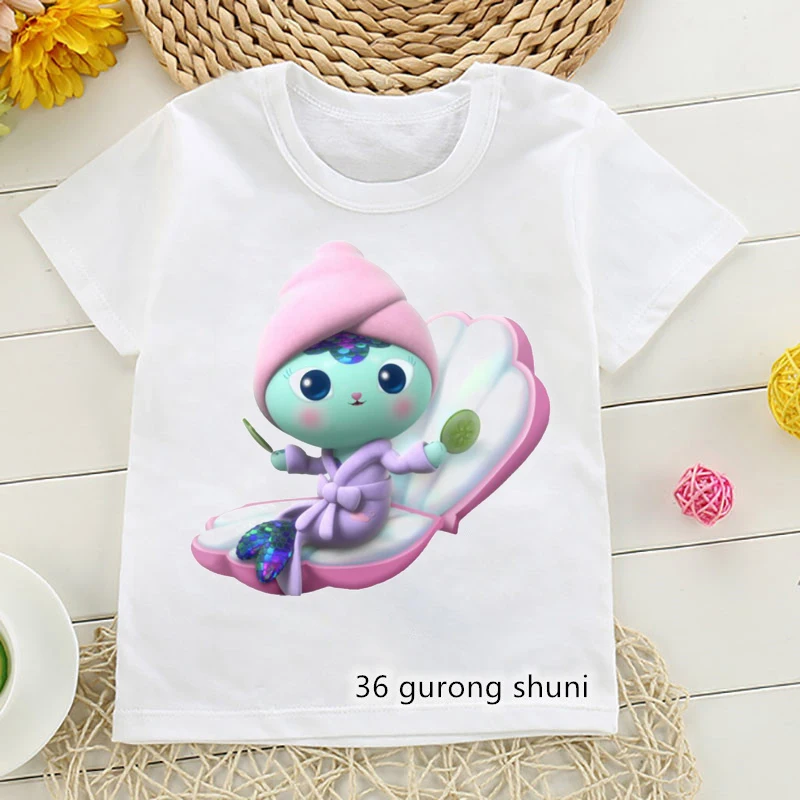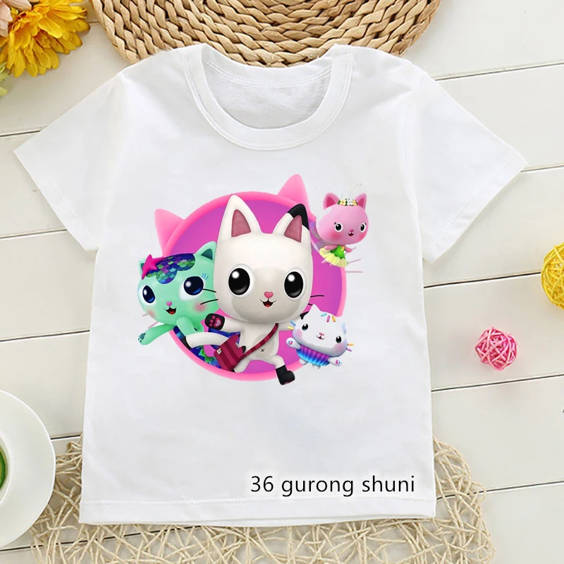 Футболка для девочек, милая одежда с мультяшным принтом Габби и кукольный домик для девочек, летние модные футболки, забавные детские футболки, топы с коротким рукавом