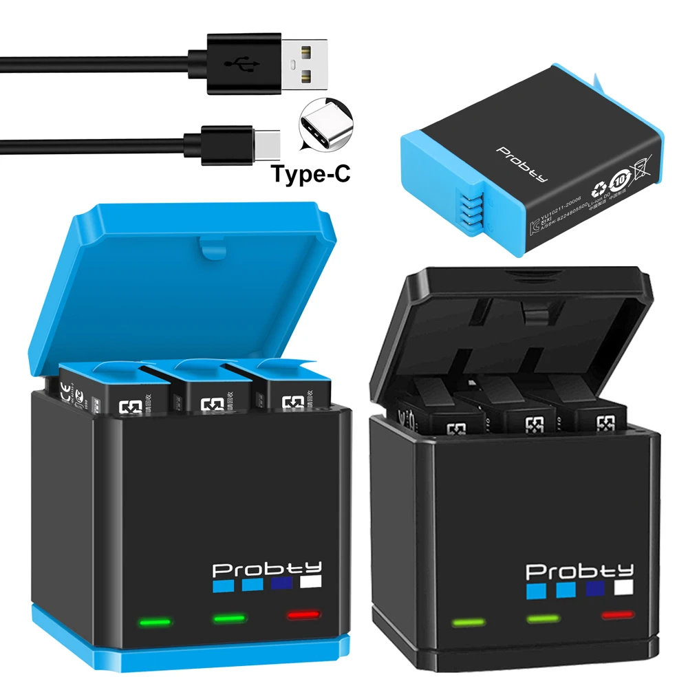 Для Gopro Hero 10 9 8 7 6 5 Hero 9 1850 мАч литий-ионный аккумулятор 3-сторонний чехол для быстрой зарядки аксессуары для экшн-видеокамер