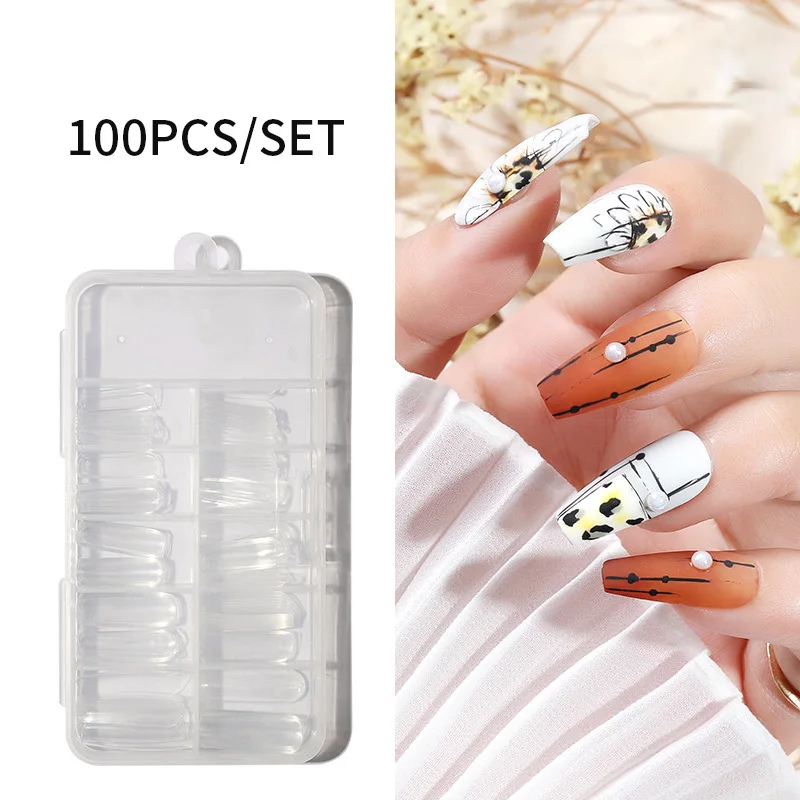 Накладные ногти, 100 шт.кор., прозрачные, бесшовные, полное покрытие, накладные ногти, короткие, Т-образные, капля воды, стикер на полную длину накладные ногти