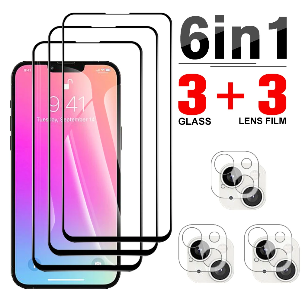 6 в 1 защитное стекло с полным покрытием для IPhone 13 Pro Max, закаленное стекло для iphone13 13 mini 13 Pro max, пленка для объектива камеры